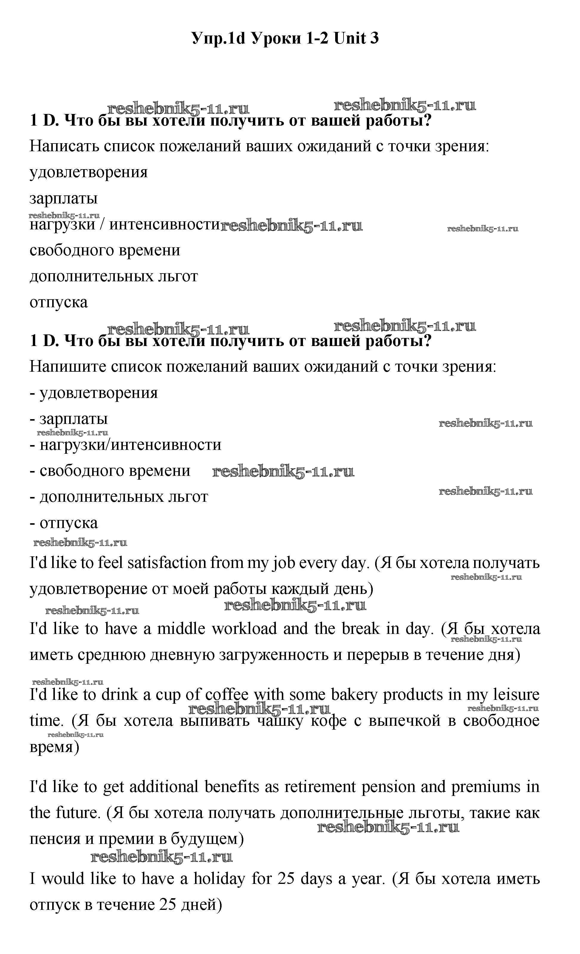 Готовая домашняя работа с ответами по Английскому языку за 11 класс Гроза, Дворецкая Учебник New Millennium Титул 2015 ФГОС - lesson 1-2 1d