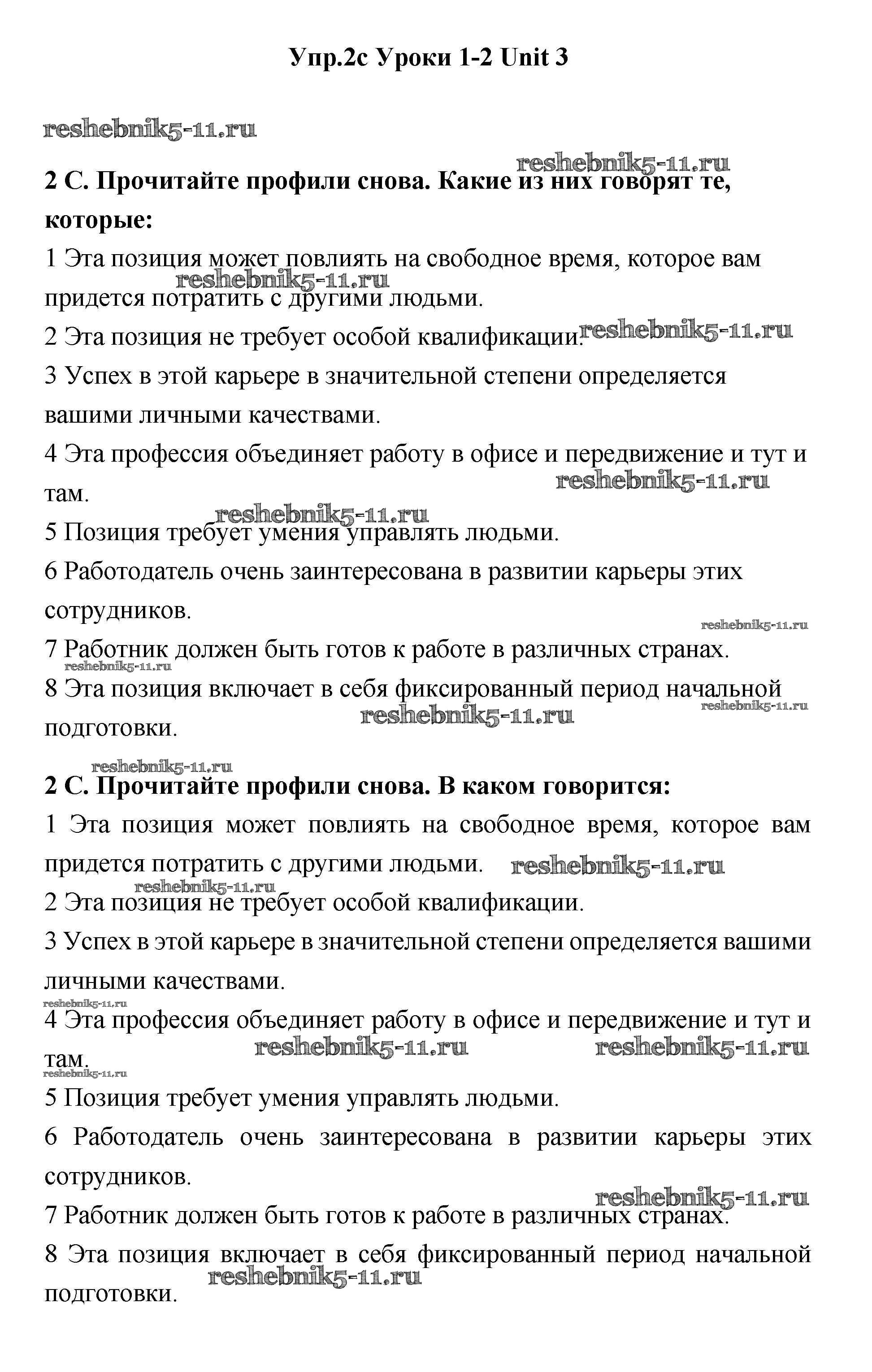 Готовая домашняя работа с ответами по Английскому языку за 11 класс Гроза, Дворецкая Учебник New Millennium Титул 2015 ФГОС - lesson 1-2 2c