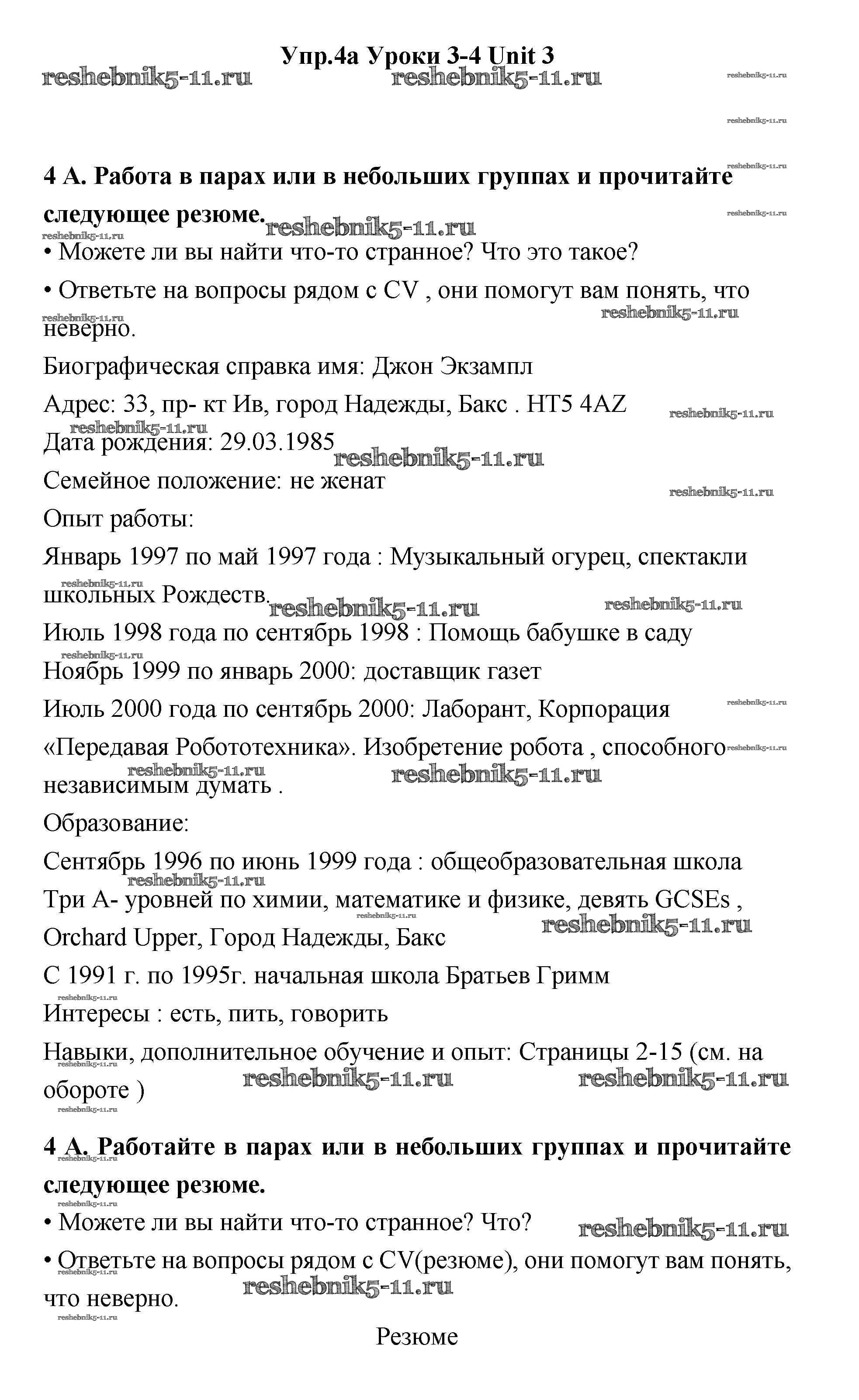 Готовая домашняя работа с ответами по Английскому языку за 11 класс Гроза, Дворецкая Учебник New Millennium Титул 2015 ФГОС - lesson 3-4 4a