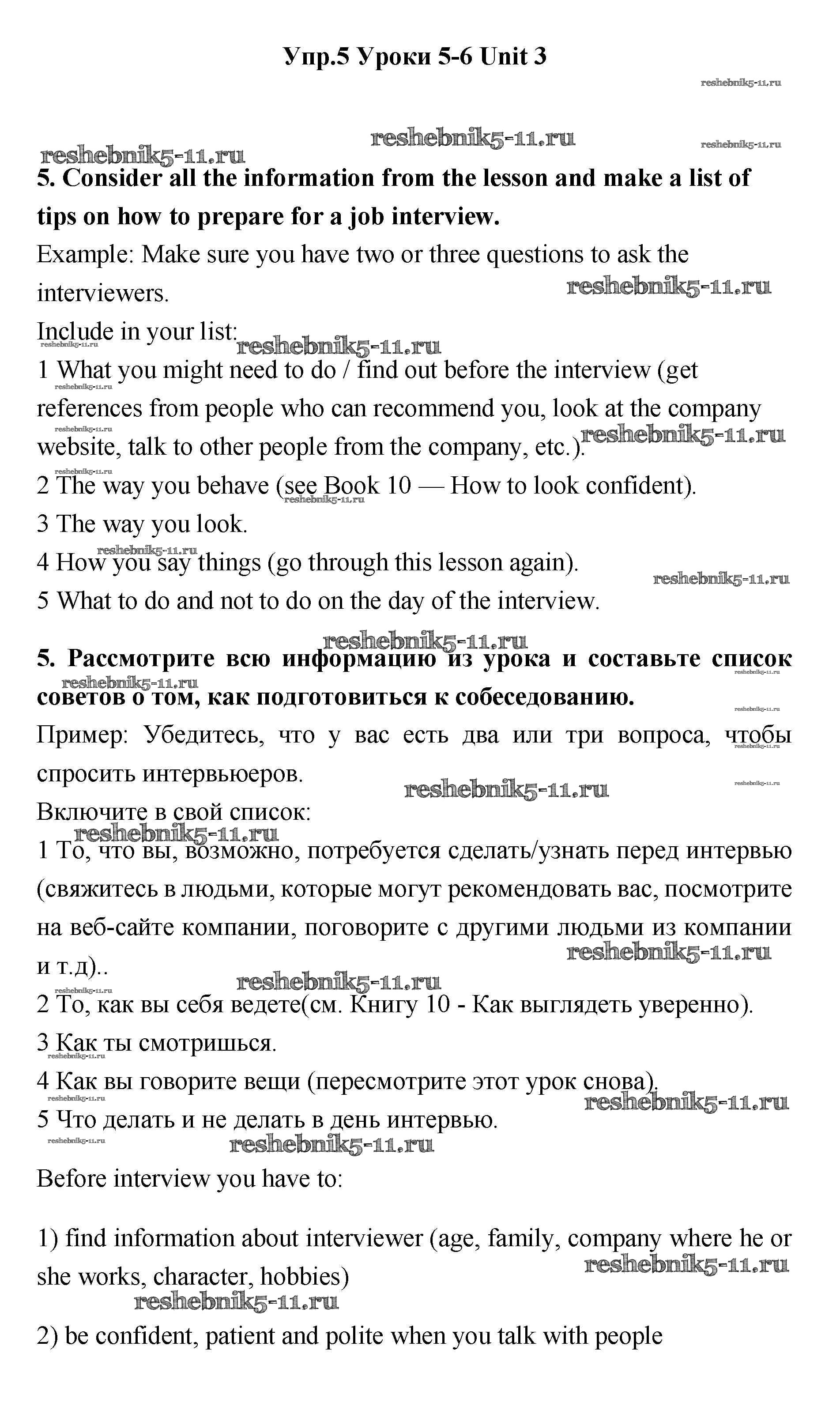 Готовая домашняя работа с ответами по Английскому языку за 11 класс Гроза, Дворецкая Учебник New Millennium Титул 2015 ФГОС - lesson 5-6 5