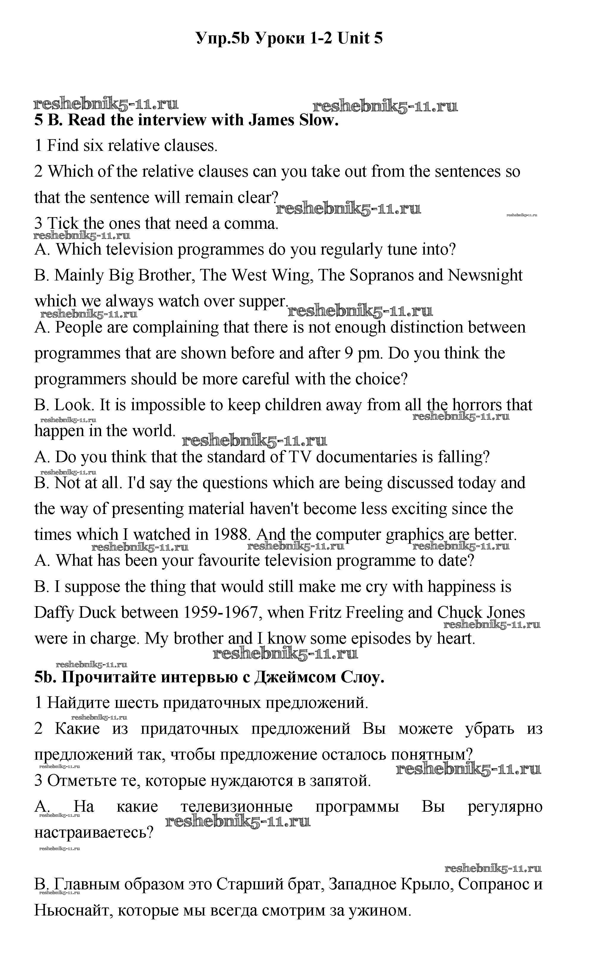 Готовая домашняя работа с ответами по Английскому языку за 11 класс Гроза, Дворецкая Учебник New Millennium Титул 2015 ФГОС - lesson 1-2 5b