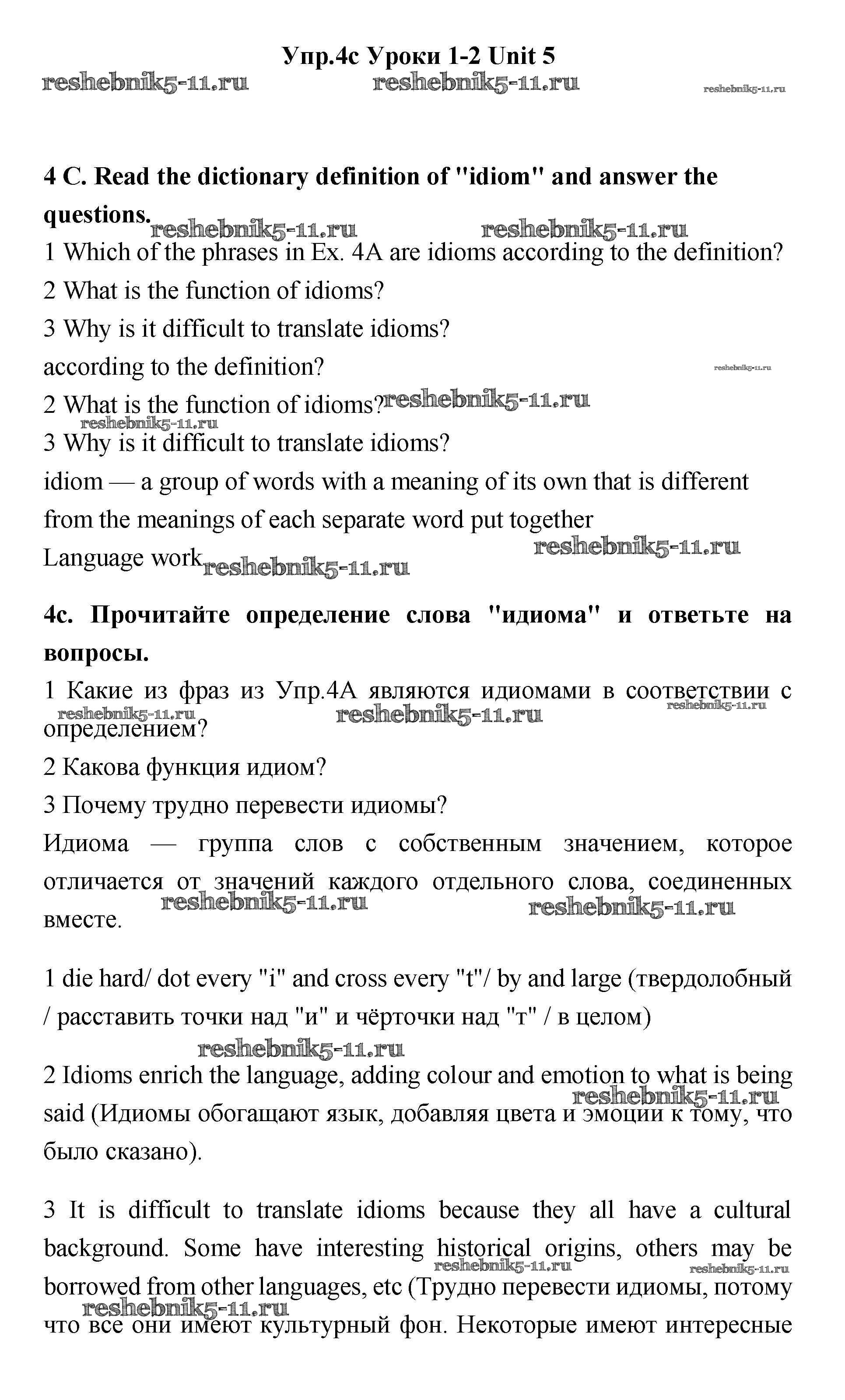 Готовая домашняя работа с ответами по Английскому языку за 11 класс Гроза, Дворецкая Учебник New Millennium Титул 2015 ФГОС - lesson 1-2 4c