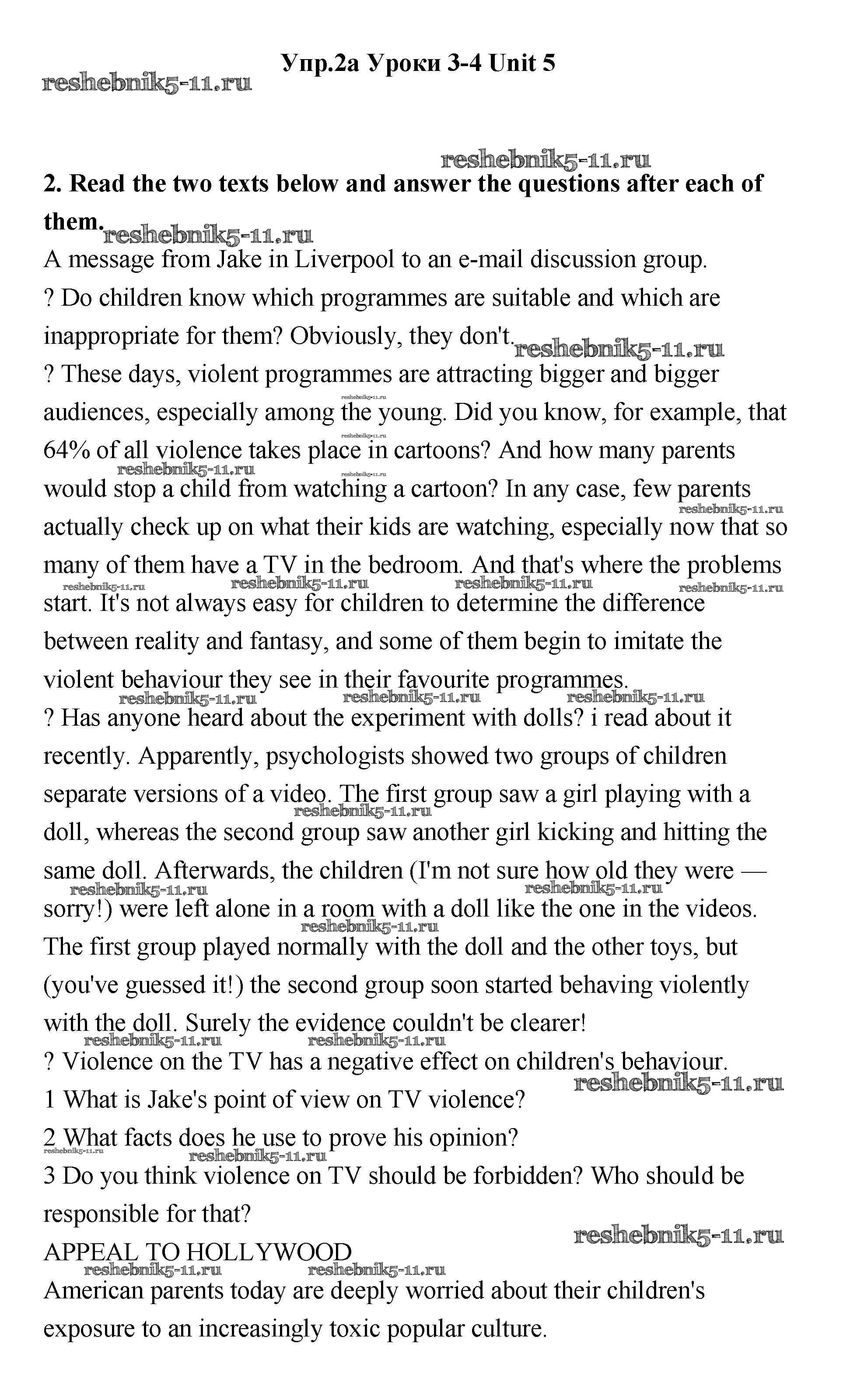 Готовая домашняя работа с ответами по Английскому языку за 11 класс Гроза, Дворецкая Учебник New Millennium Титул 2015 ФГОС - lesson 3-4 2a