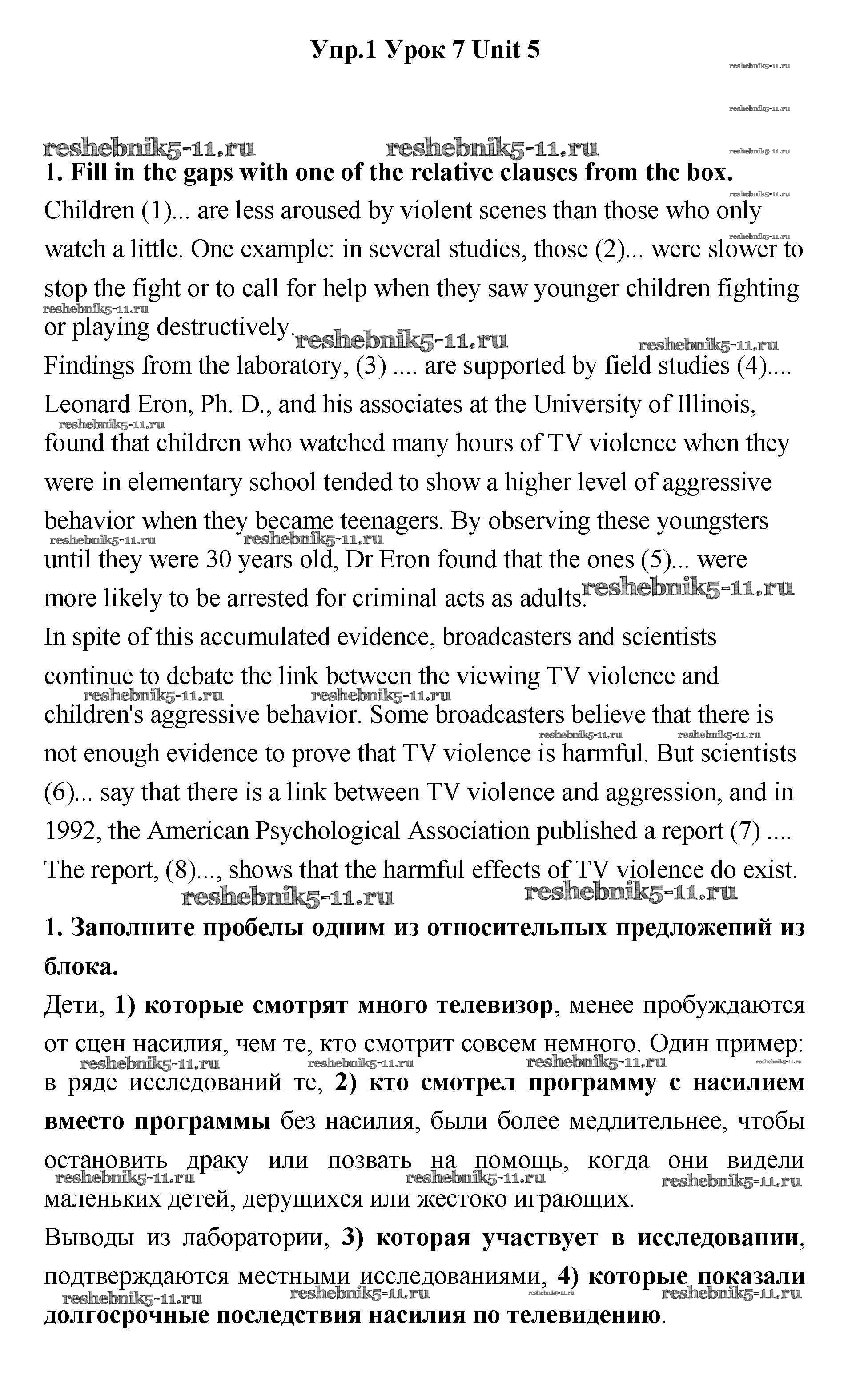 Готовая домашняя работа с ответами по Английскому языку за 11 класс Гроза, Дворецкая Учебник New Millennium Титул 2015 ФГОС - lesson 7 1