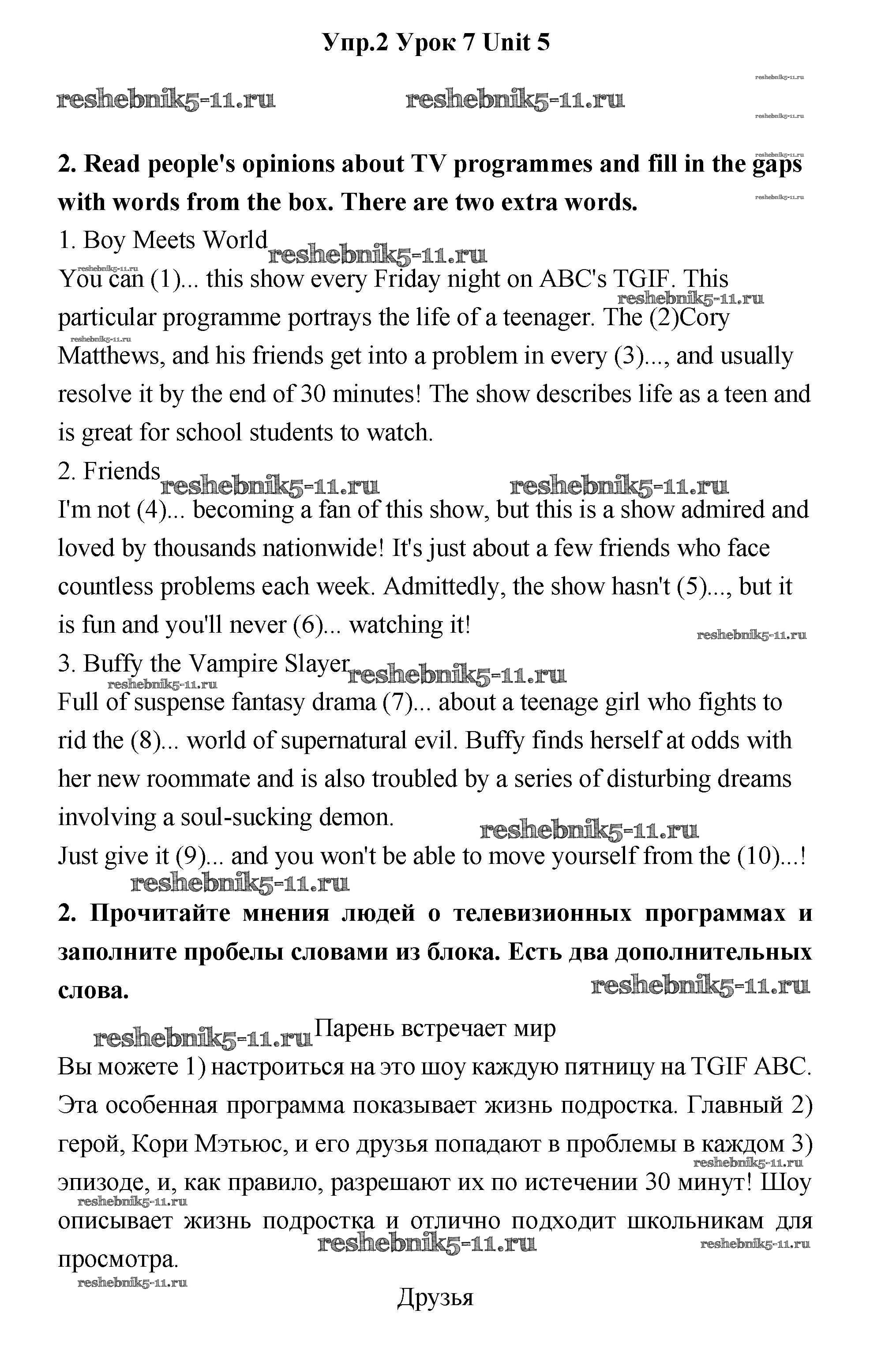 Готовая домашняя работа с ответами по Английскому языку за 11 класс Гроза, Дворецкая Учебник New Millennium Титул 2015 ФГОС - lesson 7 2