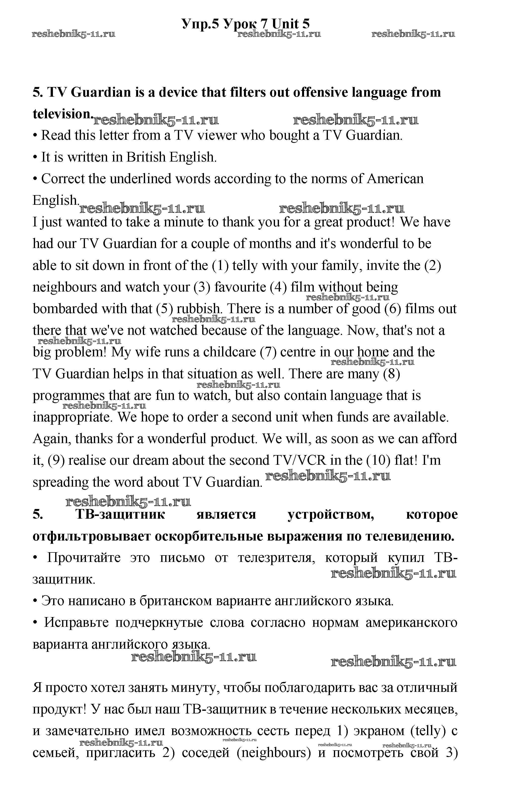 Готовая домашняя работа с ответами по Английскому языку за 11 класс Гроза, Дворецкая Учебник New Millennium Титул 2015 ФГОС - lesson 7 5