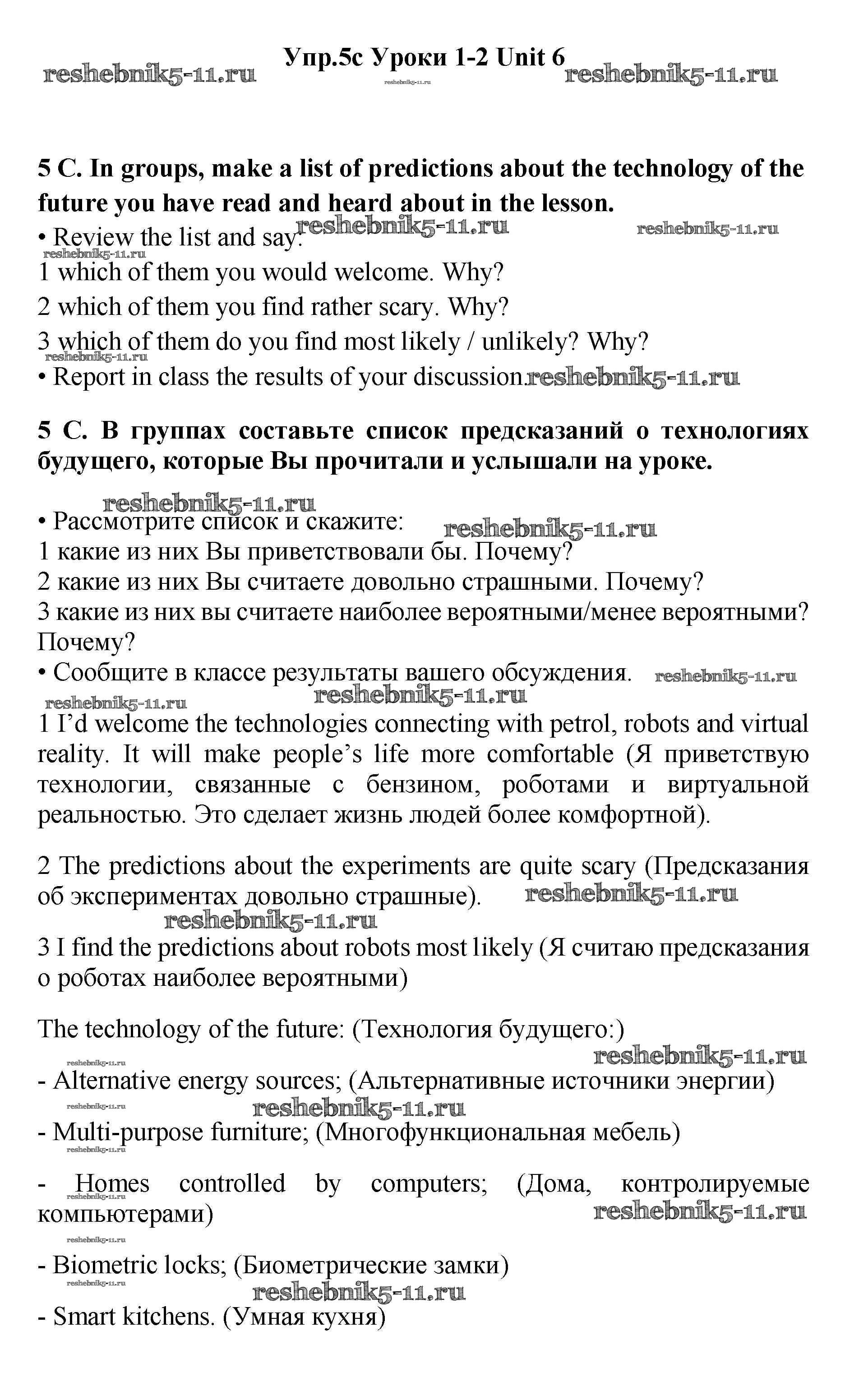 Готовая домашняя работа с ответами по Английскому языку за 11 класс Гроза, Дворецкая Учебник New Millennium Титул 2015 ФГОС - lesson 1-2 5c