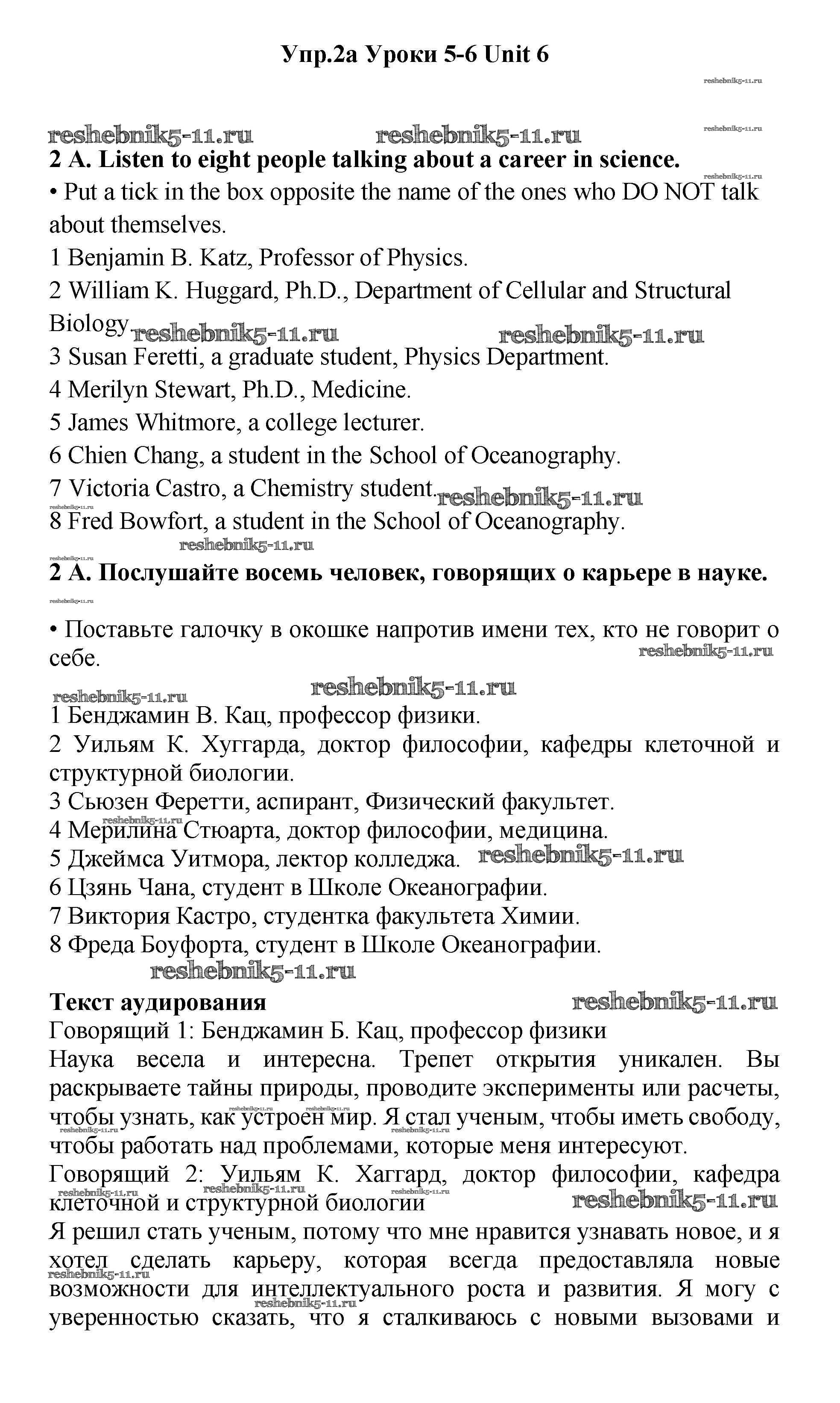 Готовая домашняя работа с ответами по Английскому языку за 11 класс Гроза, Дворецкая Учебник New Millennium Титул 2015 ФГОС - lesson 5-6 2a
