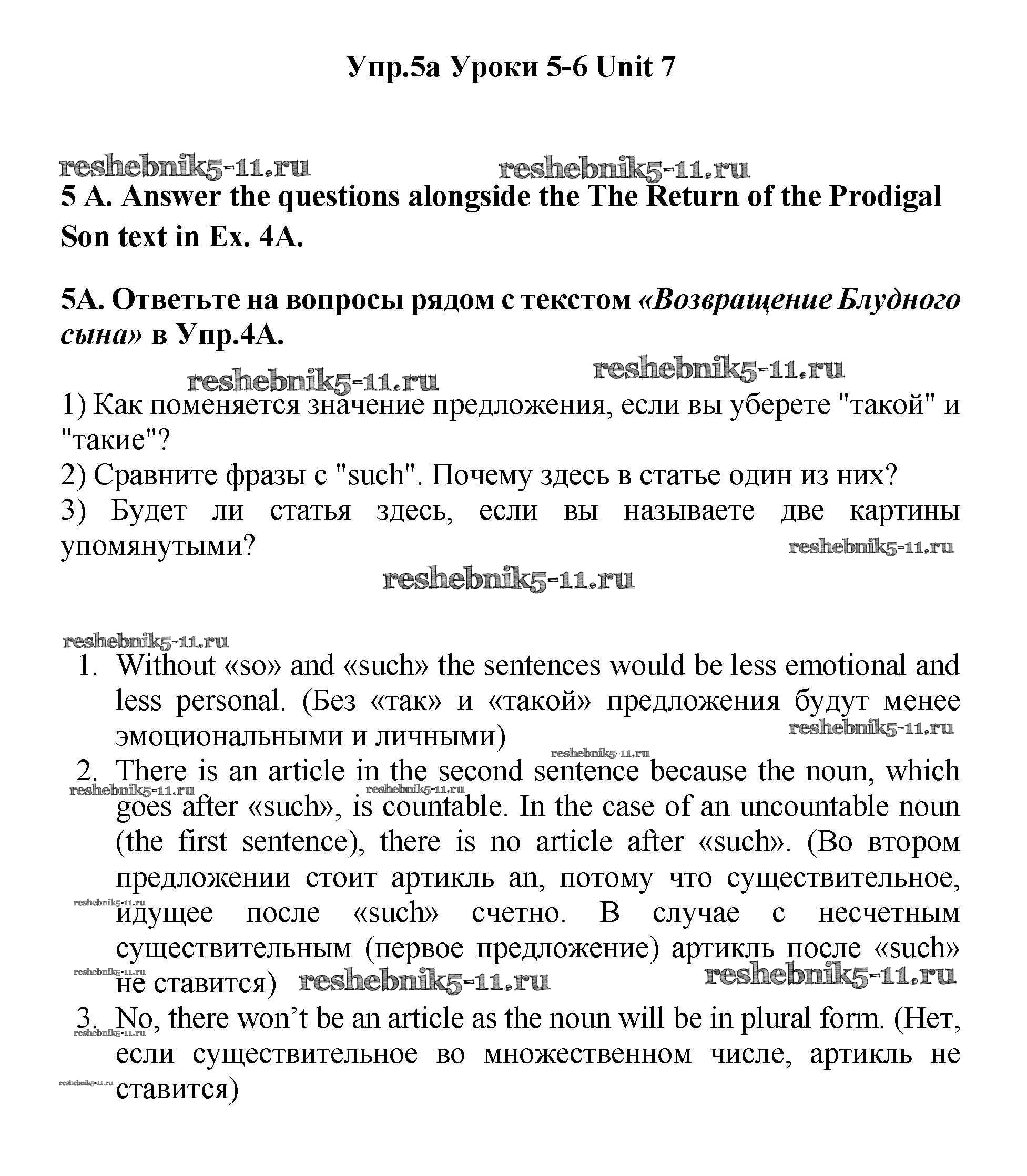 Готовая домашняя работа с ответами по Английскому языку за 11 класс Гроза, Дворецкая Учебник New Millennium Титул 2015 ФГОС - lesson 5-6 5a