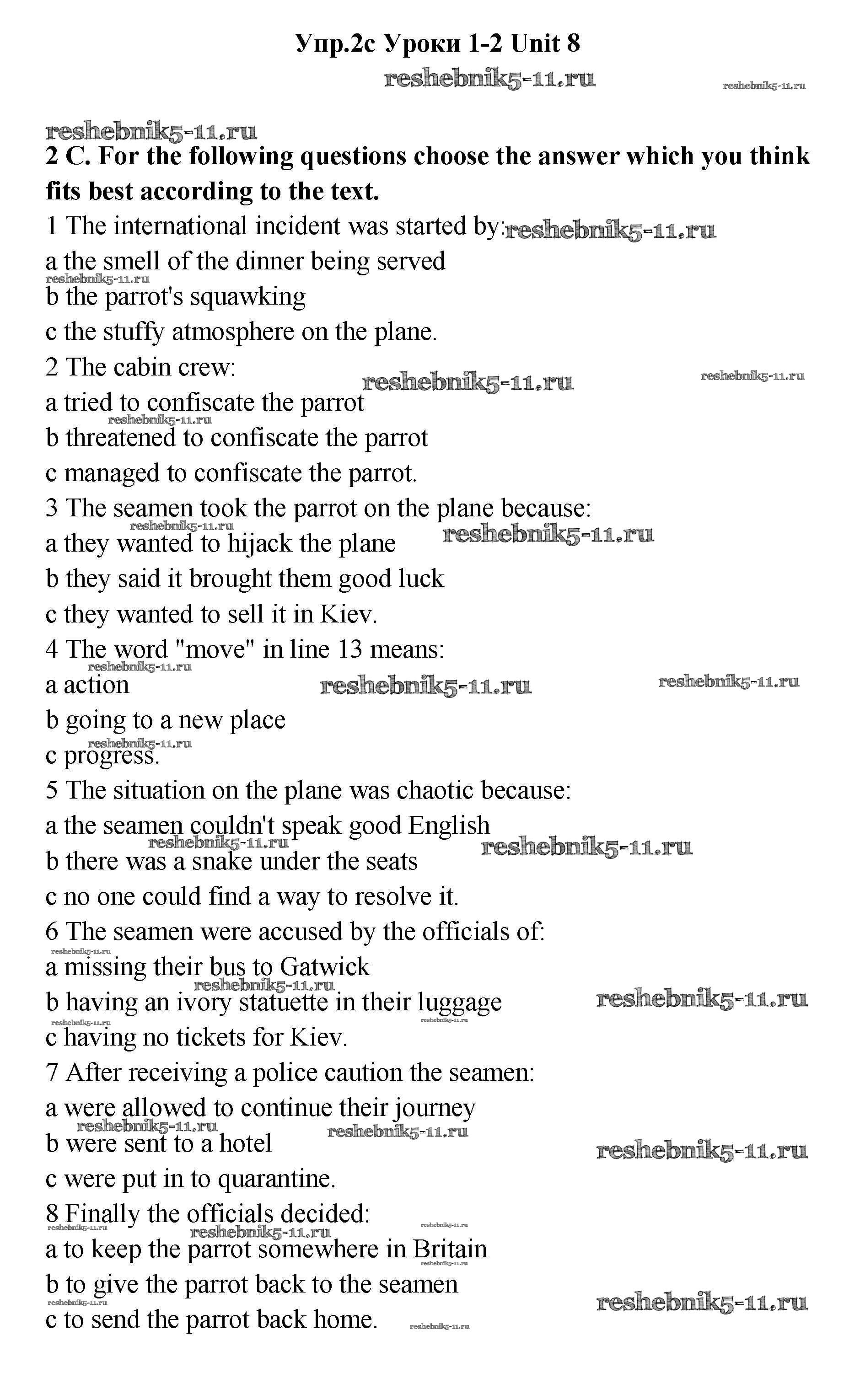 Готовая домашняя работа с ответами по Английскому языку за 11 класс Гроза, Дворецкая Учебник New Millennium Титул 2015 ФГОС - lesson 1-2 2c