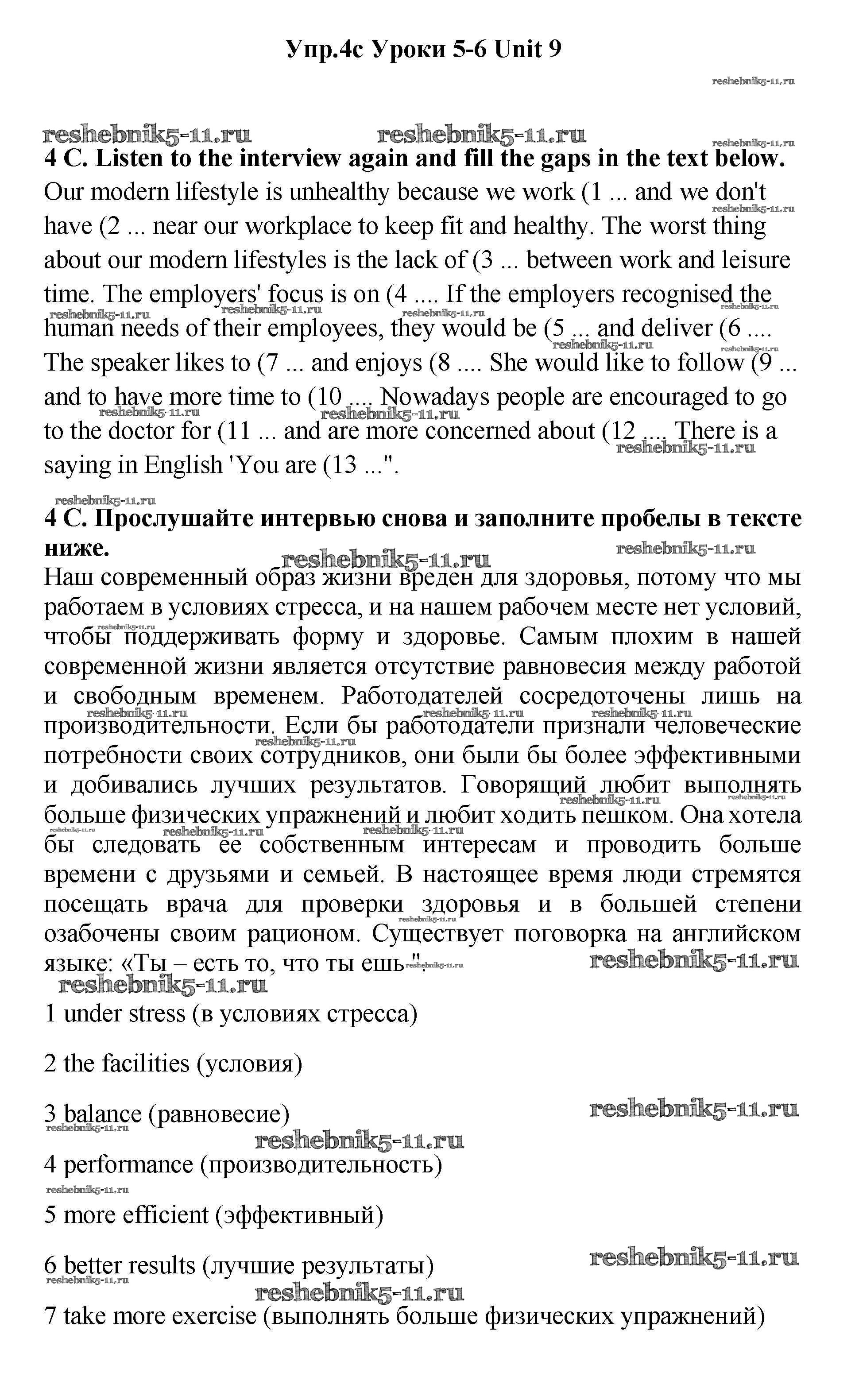 Готовая домашняя работа с ответами по Английскому языку за 11 класс Гроза, Дворецкая Учебник New Millennium Титул 2015 ФГОС - lesson 5-6 4c