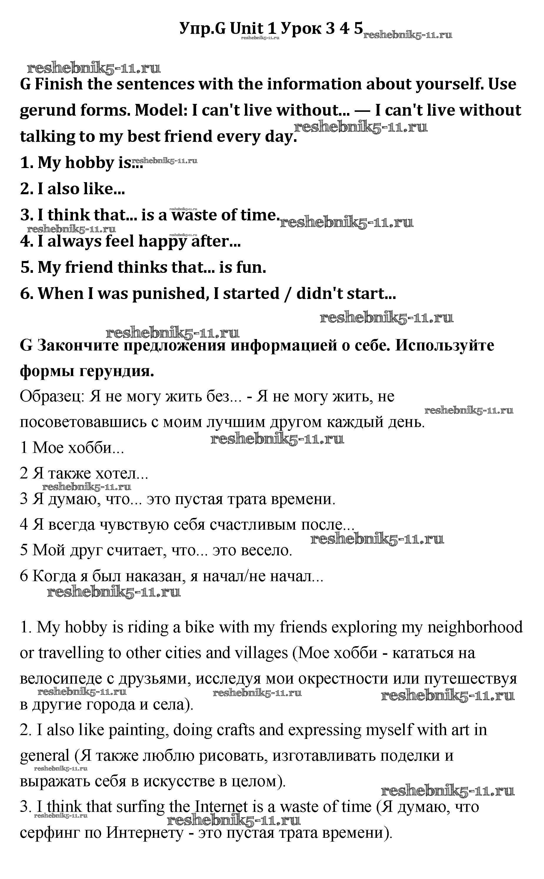 Готовая домашняя работа с ответами по Английскому языку за 11 класс Кауфман Учебник Happy English Титул 2014 ФГОС - Lesson 3-5 G