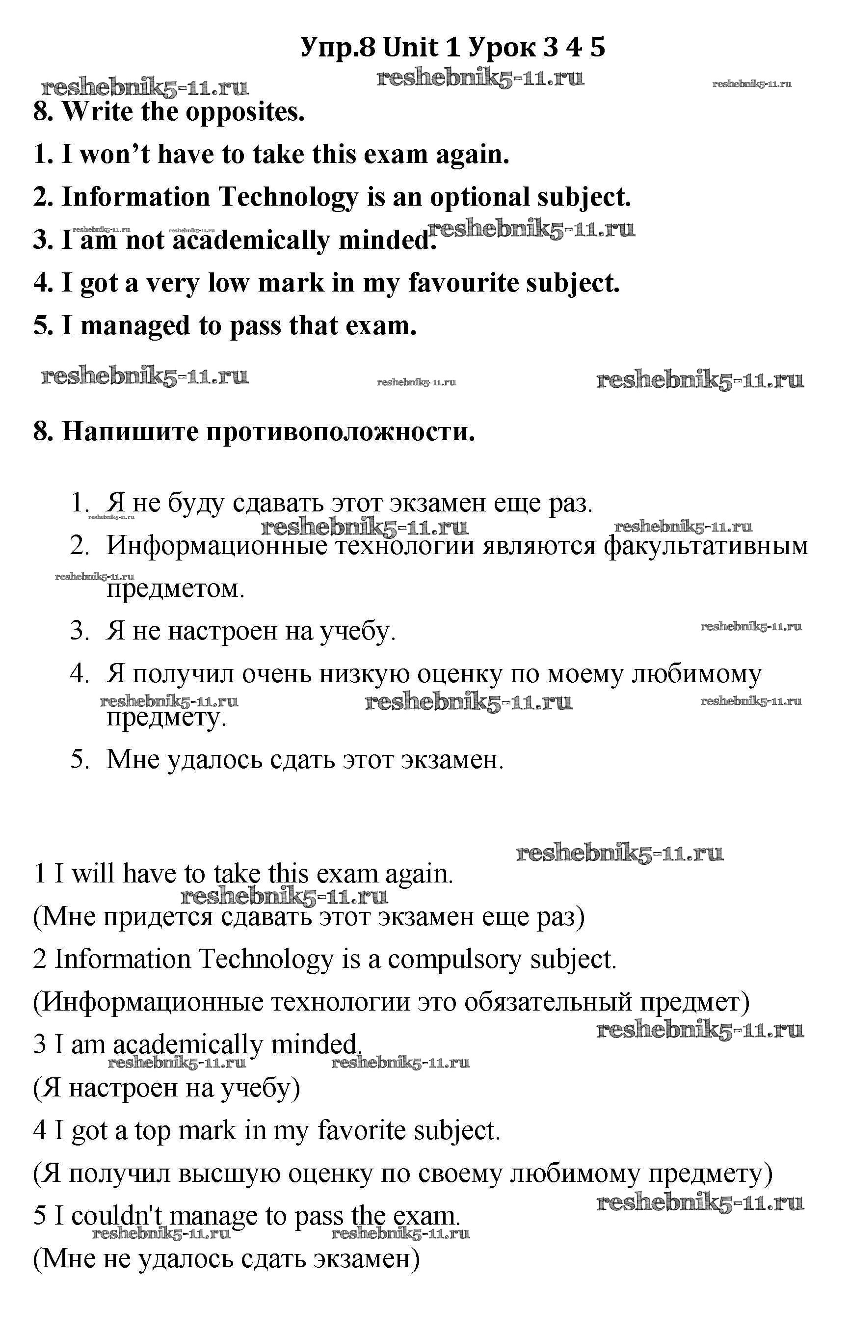 Готовая домашняя работа с ответами по Английскому языку за 11 класс Кауфман Учебник Happy English Титул 2014 ФГОС - Lesson 3-5 8