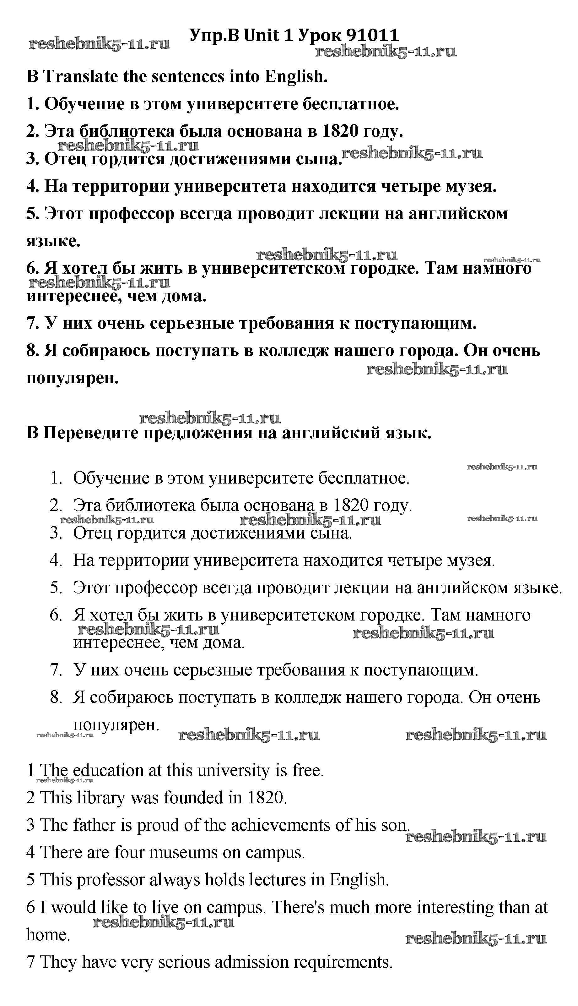 Готовая домашняя работа с ответами по Английскому языку за 11 класс Кауфман Учебник Happy English Титул 2014 ФГОС - Lesson 9-11 B