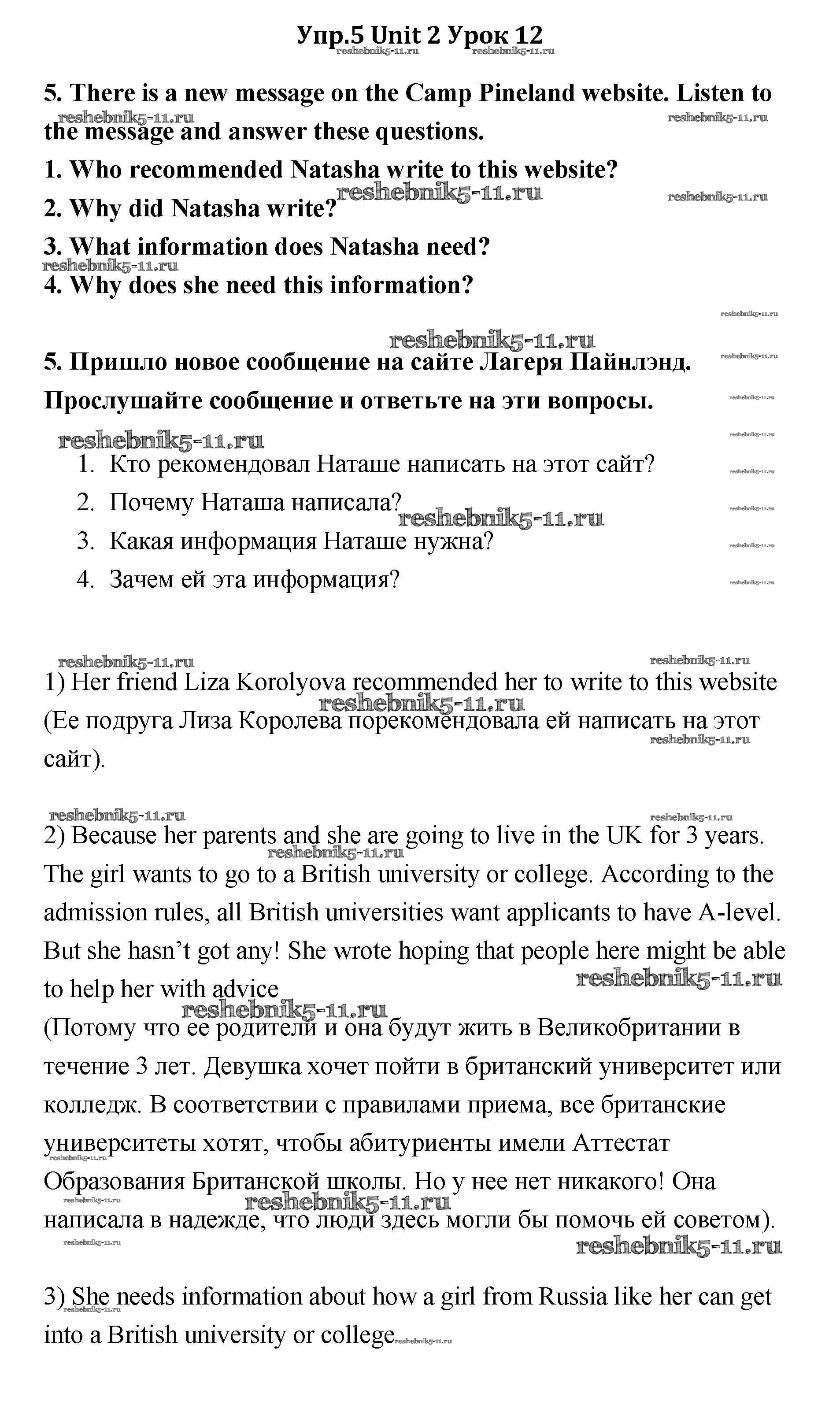 Готовая домашняя работа с ответами по Английскому языку за 11 класс Кауфман Учебник Happy English Титул 2014 ФГОС - Lesson 1-2 5