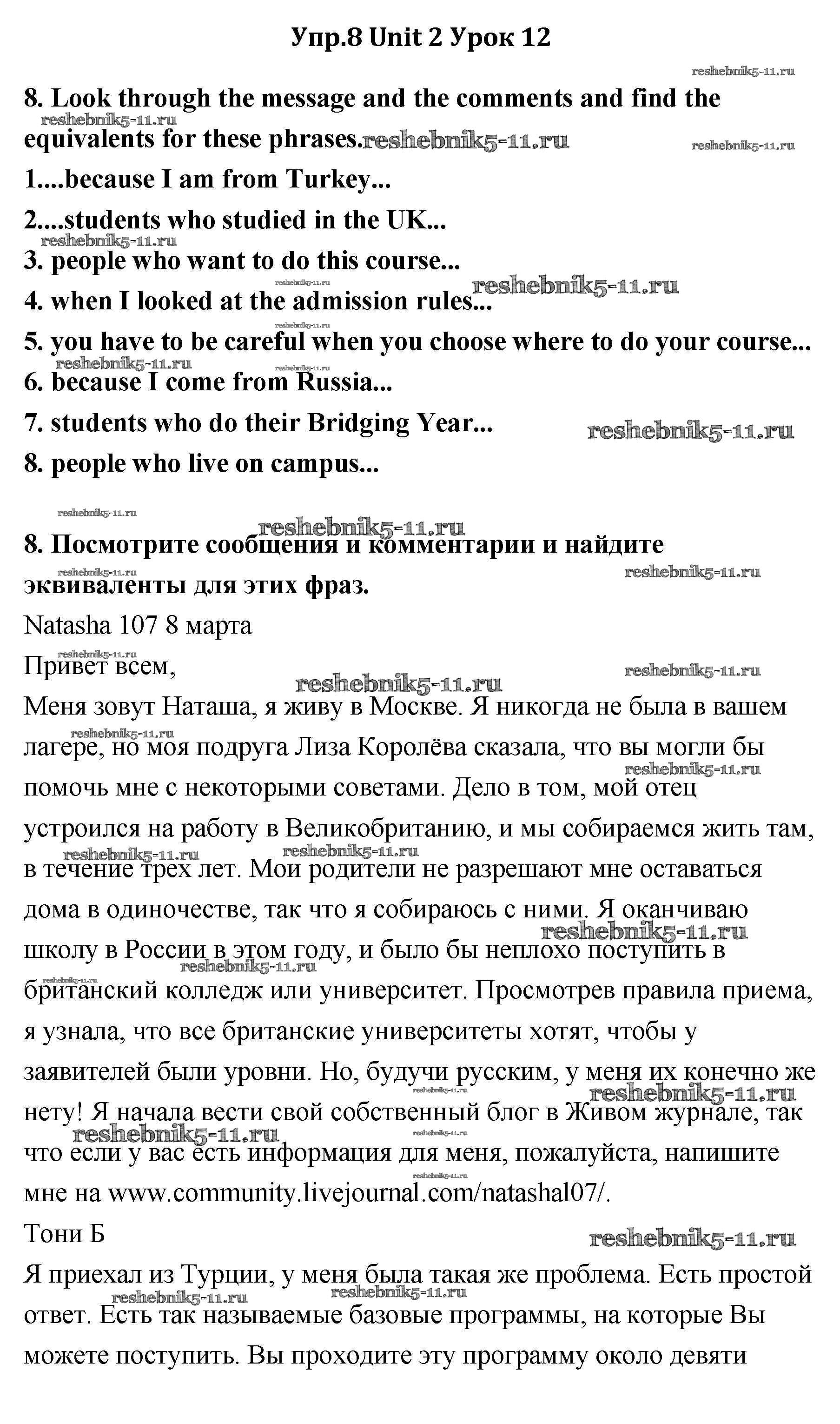 Готовая домашняя работа с ответами по Английскому языку за 11 класс Кауфман Учебник Happy English Титул 2014 ФГОС - Lesson 1-2 8