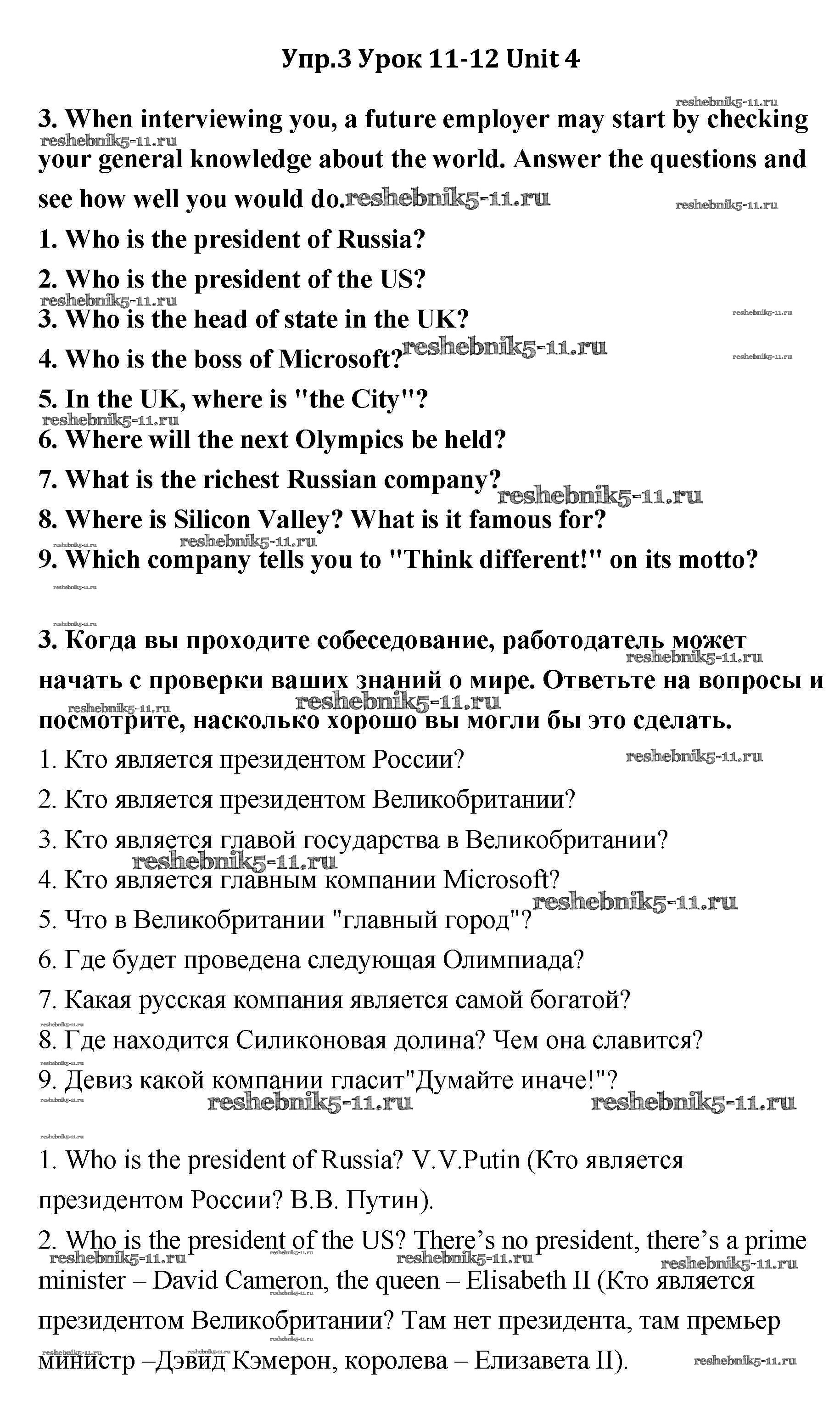 Готовая домашняя работа с ответами по Английскому языку за 11 класс Кауфман Учебник Happy English Титул 2014 ФГОС - Lesson 11-12 3
