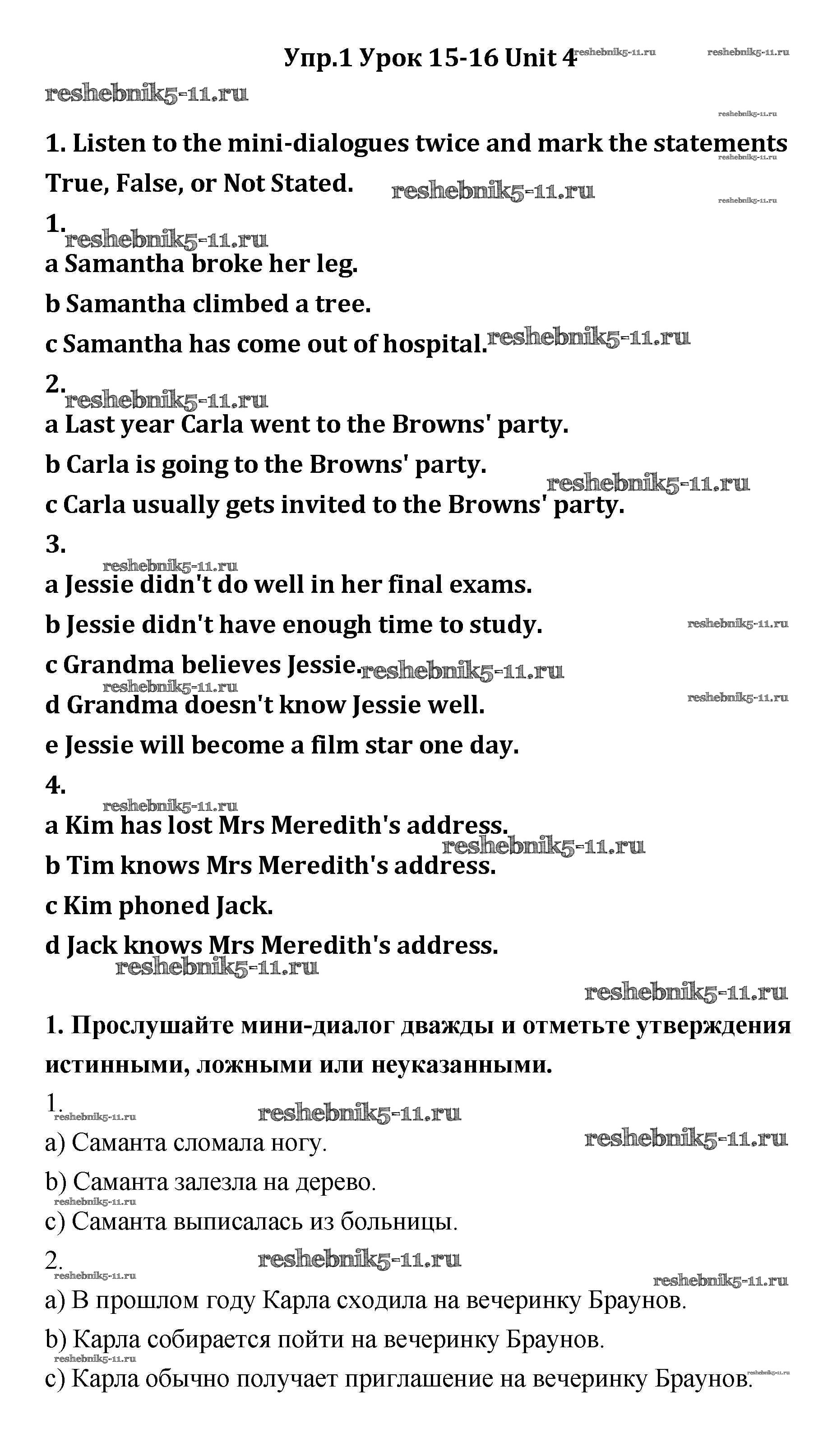 Решебник / unit 4 / lesson 15-16 / 1