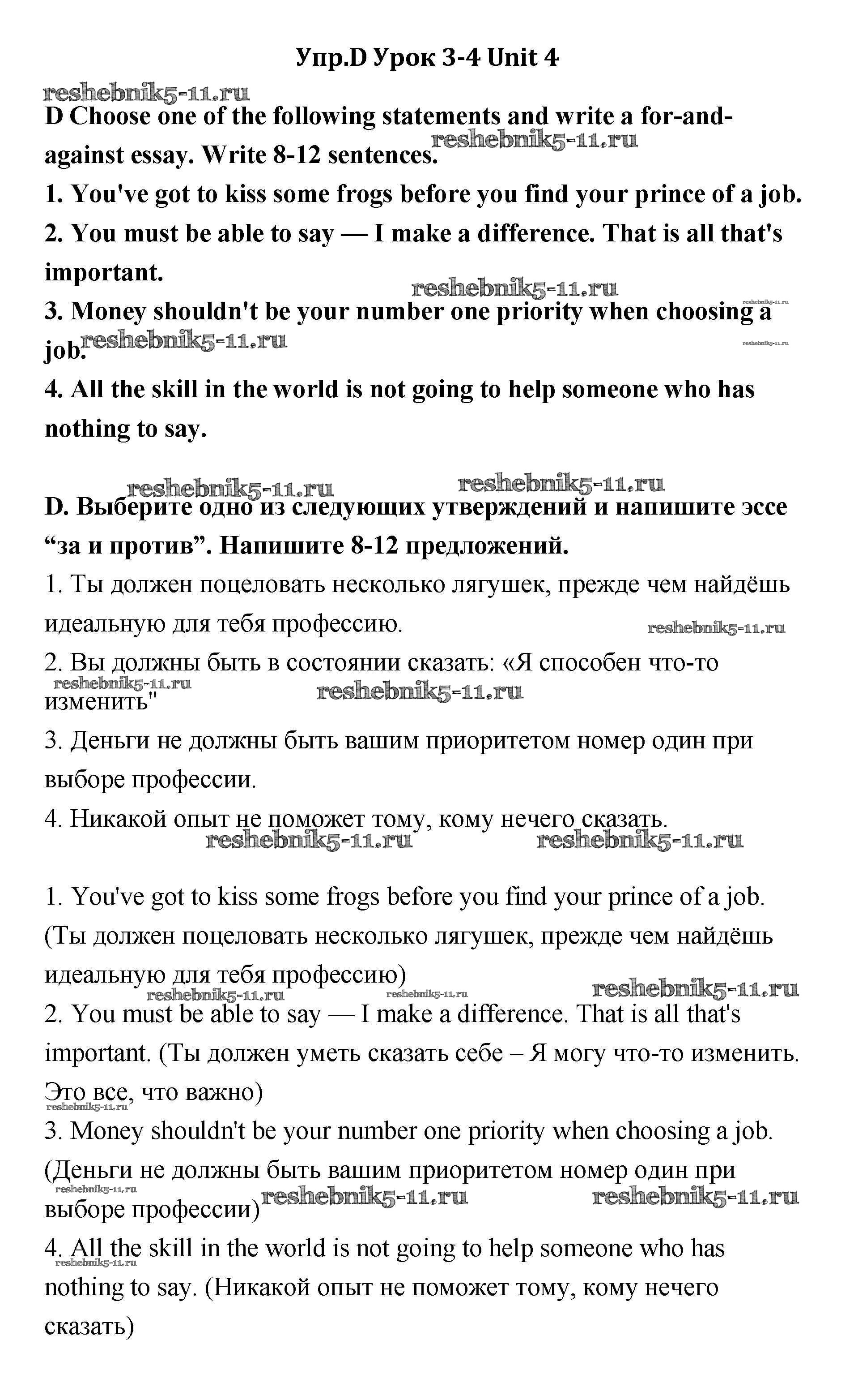 Готовая домашняя работа с ответами по Английскому языку за 11 класс Кауфман Учебник Happy English Титул 2014 ФГОС - Lesson 3-4 D