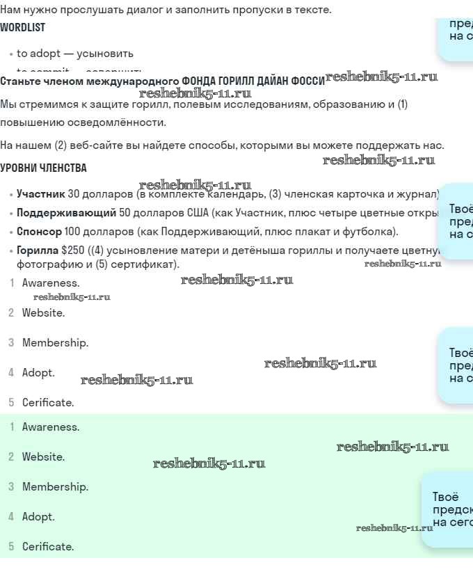 Готовая домашняя работа с ответами по Английскому языку за 11 класс Эванс, Афанасьева, Дули, Михеева, Оби Рабочая тетрадь Spotlight Просвещение 2015 ФГОС - Vocabulary Practice 5