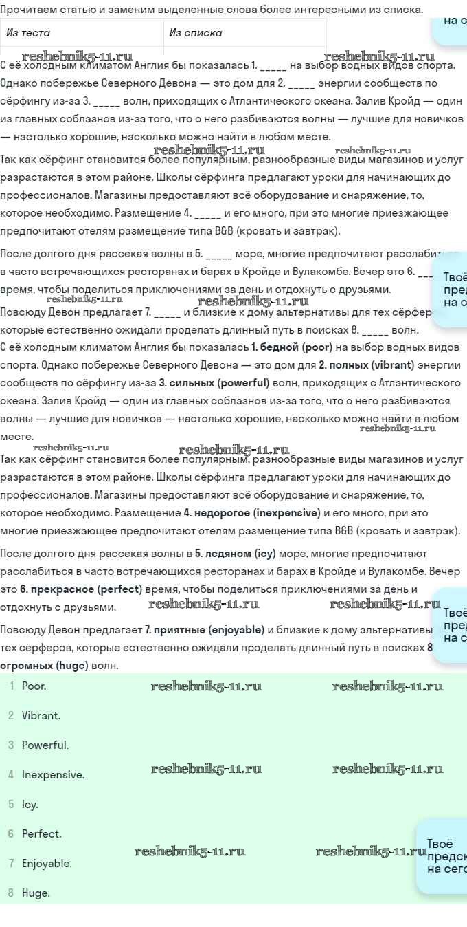 Готовая домашняя работа с ответами по Английскому языку за 11 класс Эванс, Афанасьева, Дули, Михеева, Оби Рабочая тетрадь Spotlight Просвещение 2015 ФГОС - Часть 8e 1