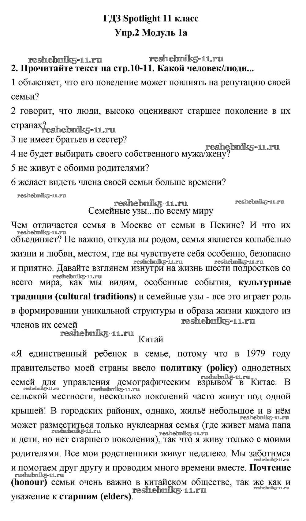 Готовая домашняя работа с ответами по Английскому языку за 11 класс Эванс, Дули, Оби, Афанасьева, Михеева Учебник Spotlight Просвещение 2015 ФГОС - Часть 1a 2