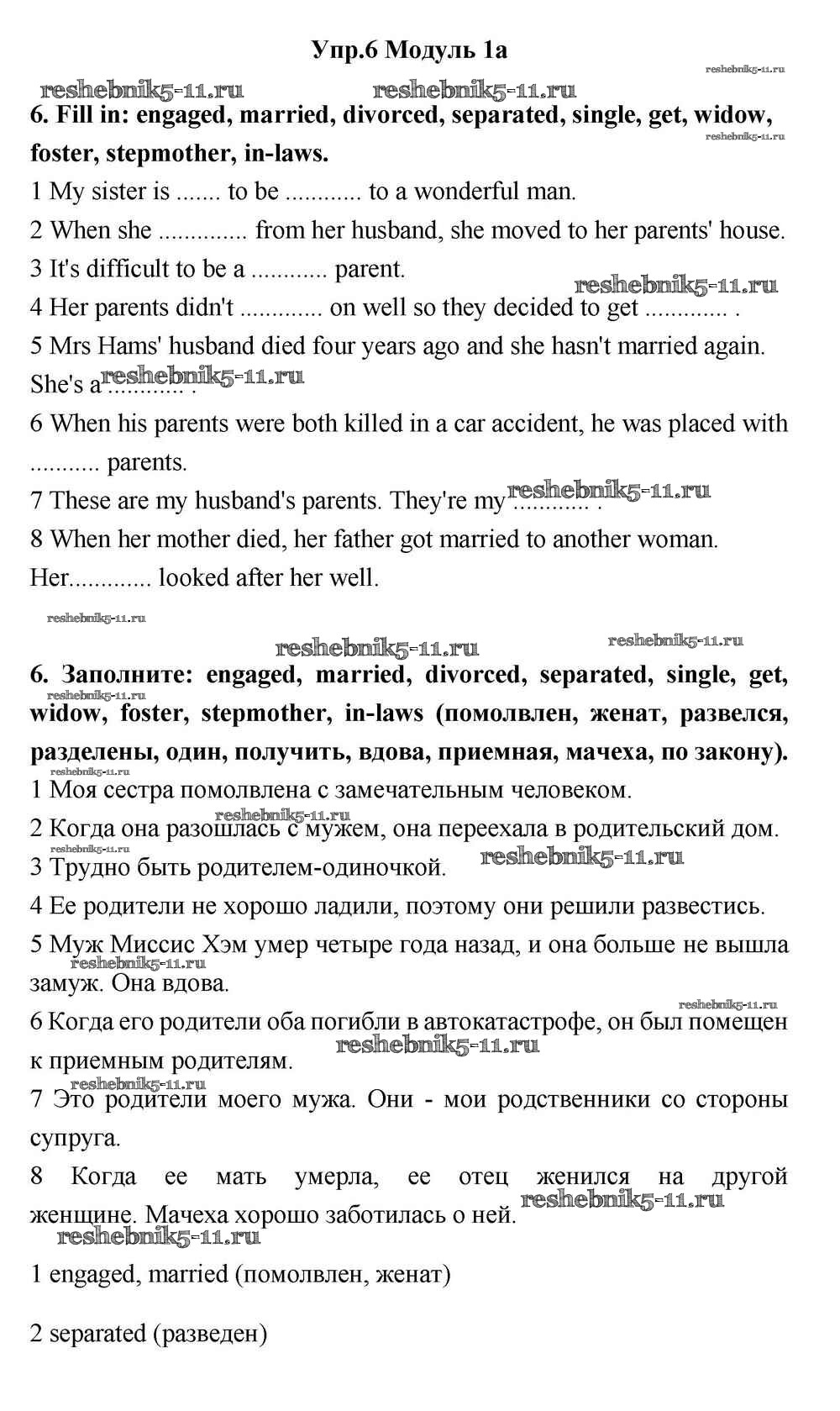 Готовая домашняя работа с ответами по Английскому языку за 11 класс Эванс, Дули, Оби, Афанасьева, Михеева Учебник Spotlight Просвещение 2015 ФГОС - Часть 1a 6