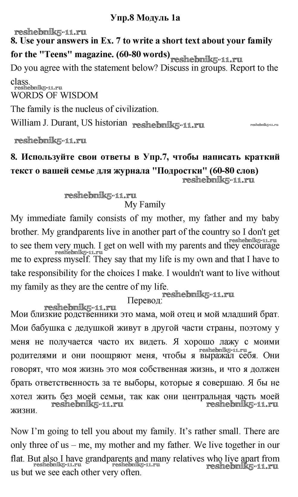 Готовая домашняя работа с ответами по Английскому языку за 11 класс Эванс, Дули, Оби, Афанасьева, Михеева Учебник Spotlight Просвещение 2015 ФГОС - Часть 1a 8