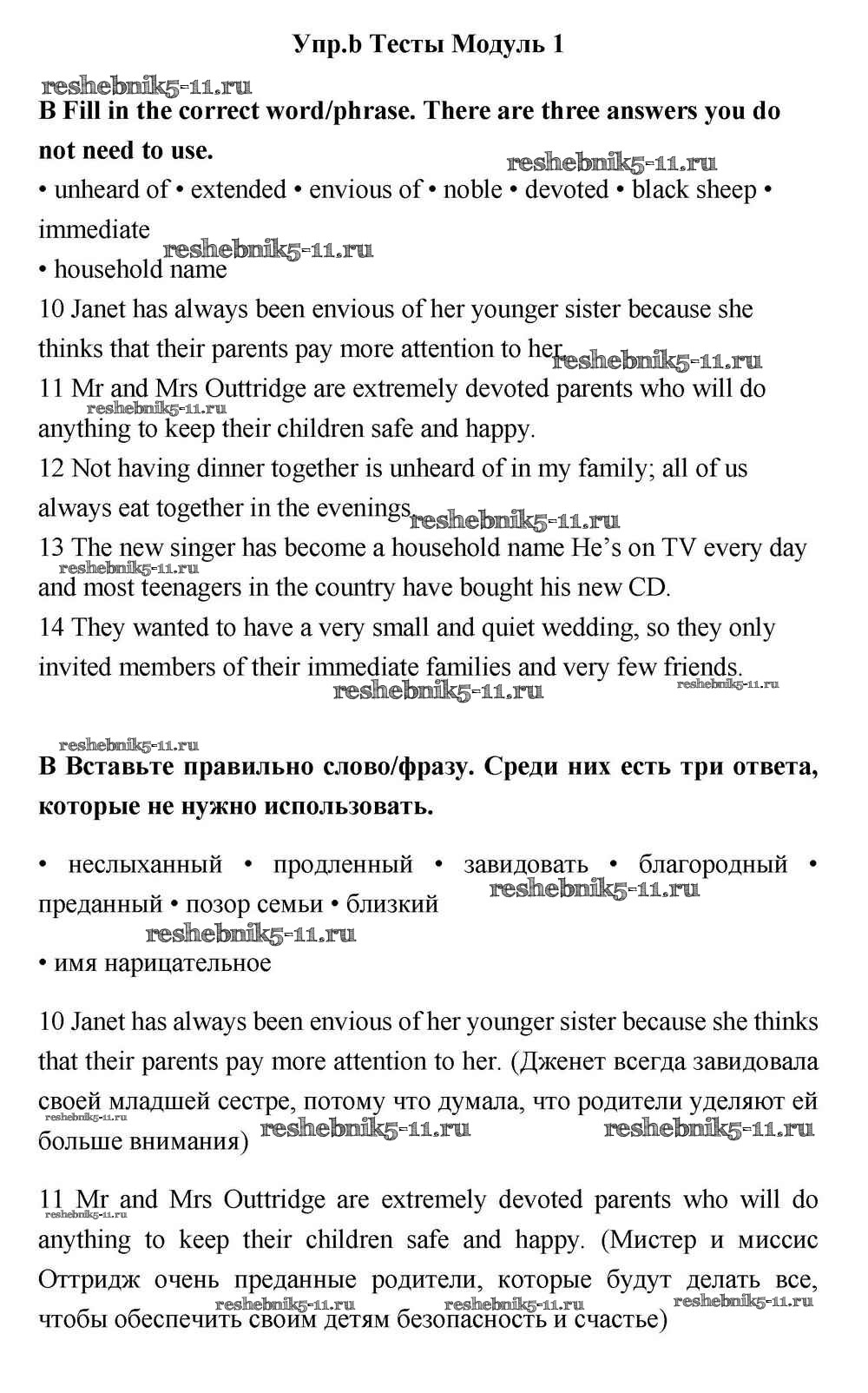 Готовая домашняя работа с ответами по Английскому языку за 11 класс Эванс, Дули, Оби, Афанасьева, Михеева Учебник Spotlight Просвещение 2015 ФГОС - Тесты B