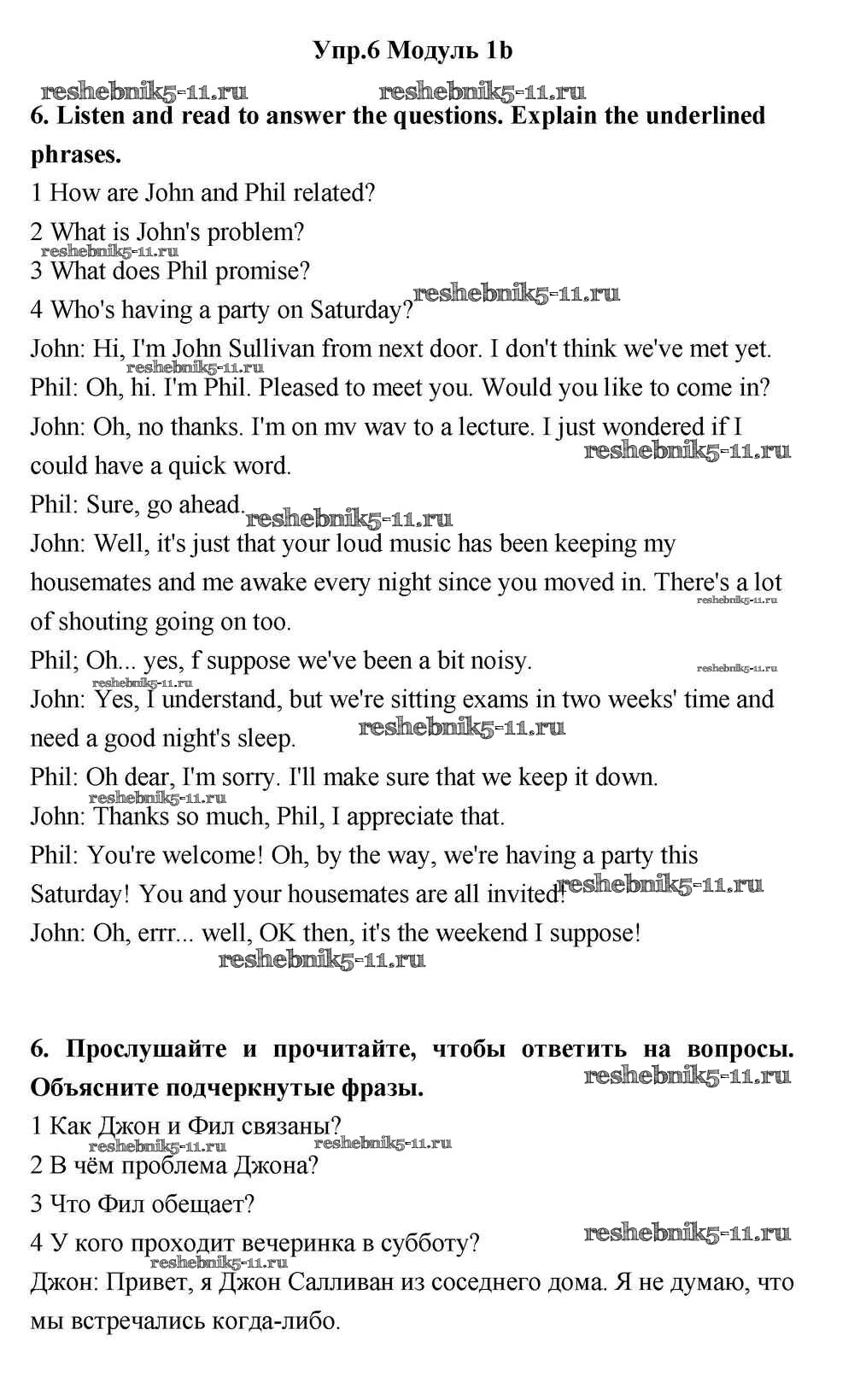 Готовая домашняя работа с ответами по Английскому языку за 11 класс Эванс, Дули, Оби, Афанасьева, Михеева Учебник Spotlight Просвещение 2015 ФГОС - Часть 1b 6