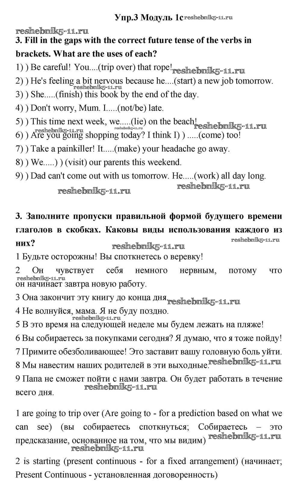 Готовая домашняя работа с ответами по Английскому языку за 11 класс Эванс, Дули, Оби, Афанасьева, Михеева Учебник Spotlight Просвещение 2015 ФГОС - Часть 1c 3