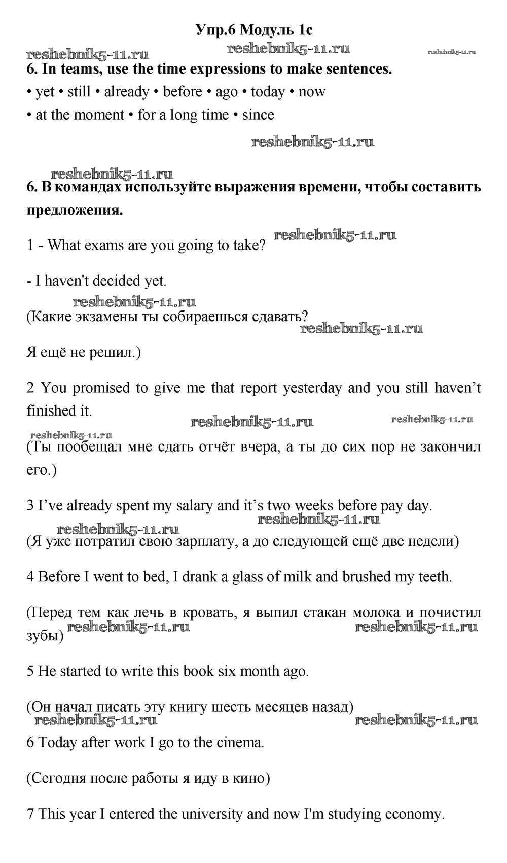 Готовая домашняя работа с ответами по Английскому языку за 11 класс Эванс, Дули, Оби, Афанасьева, Михеева Учебник Spotlight Просвещение 2015 ФГОС - Часть 1c 6