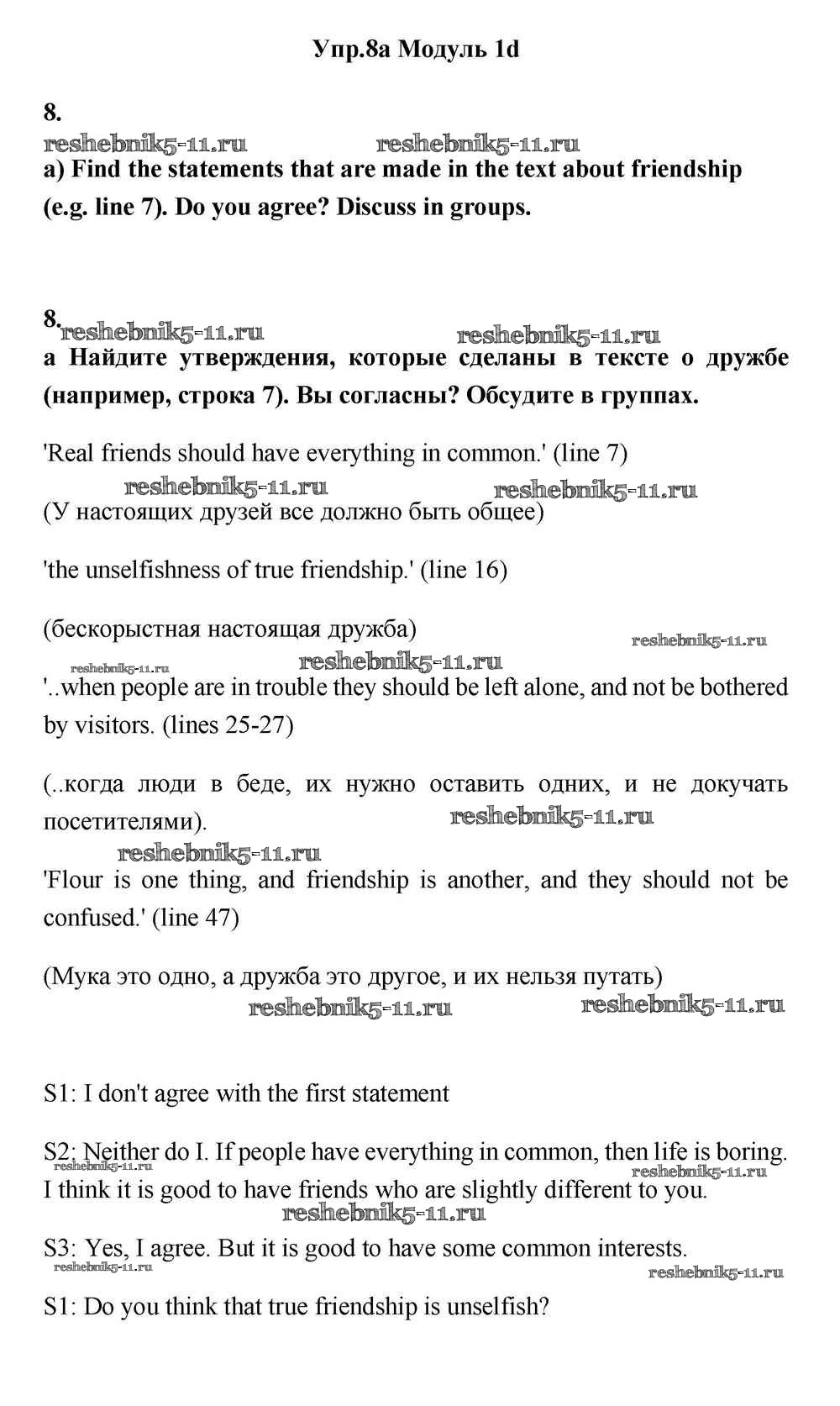 Готовая домашняя работа с ответами по Английскому языку за 11 класс Эванс, Дули, Оби, Афанасьева, Михеева Учебник Spotlight Просвещение 2015 ФГОС - Часть 1d 8a