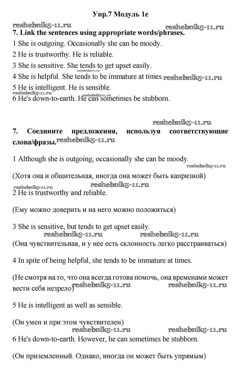 Готовая домашняя работа с ответами по Английскому языку за 11 класс Эванс, Дули, Оби, Афанасьева, Михеева Учебник Spotlight Просвещение 2015 ФГОС - Часть 1e 7