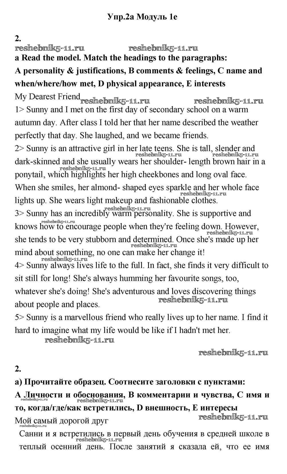 Готовая домашняя работа с ответами по Английскому языку за 11 класс Эванс, Дули, Оби, Афанасьева, Михеева Учебник Spotlight Просвещение 2015 ФГОС - Часть 1e 2a