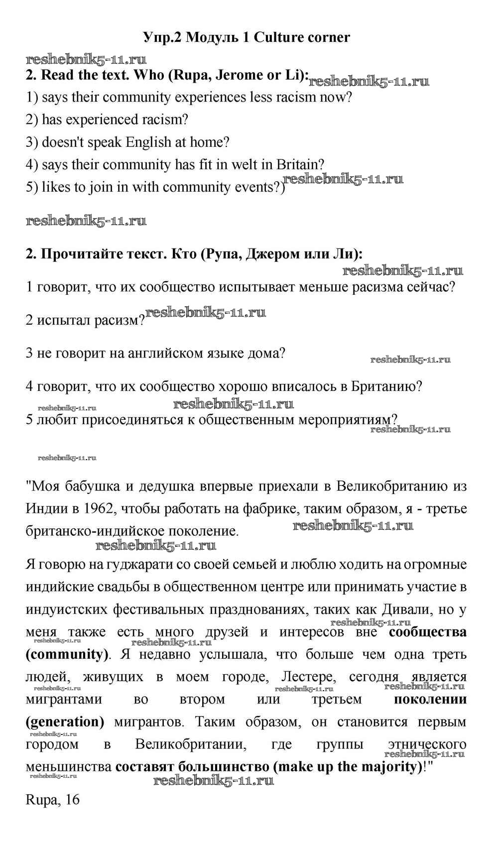 Готовая домашняя работа с ответами по Английскому языку за 11 класс Эванс, Дули, Оби, Афанасьева, Михеева Учебник Spotlight Просвещение 2015 ФГОС - Culture corner 2