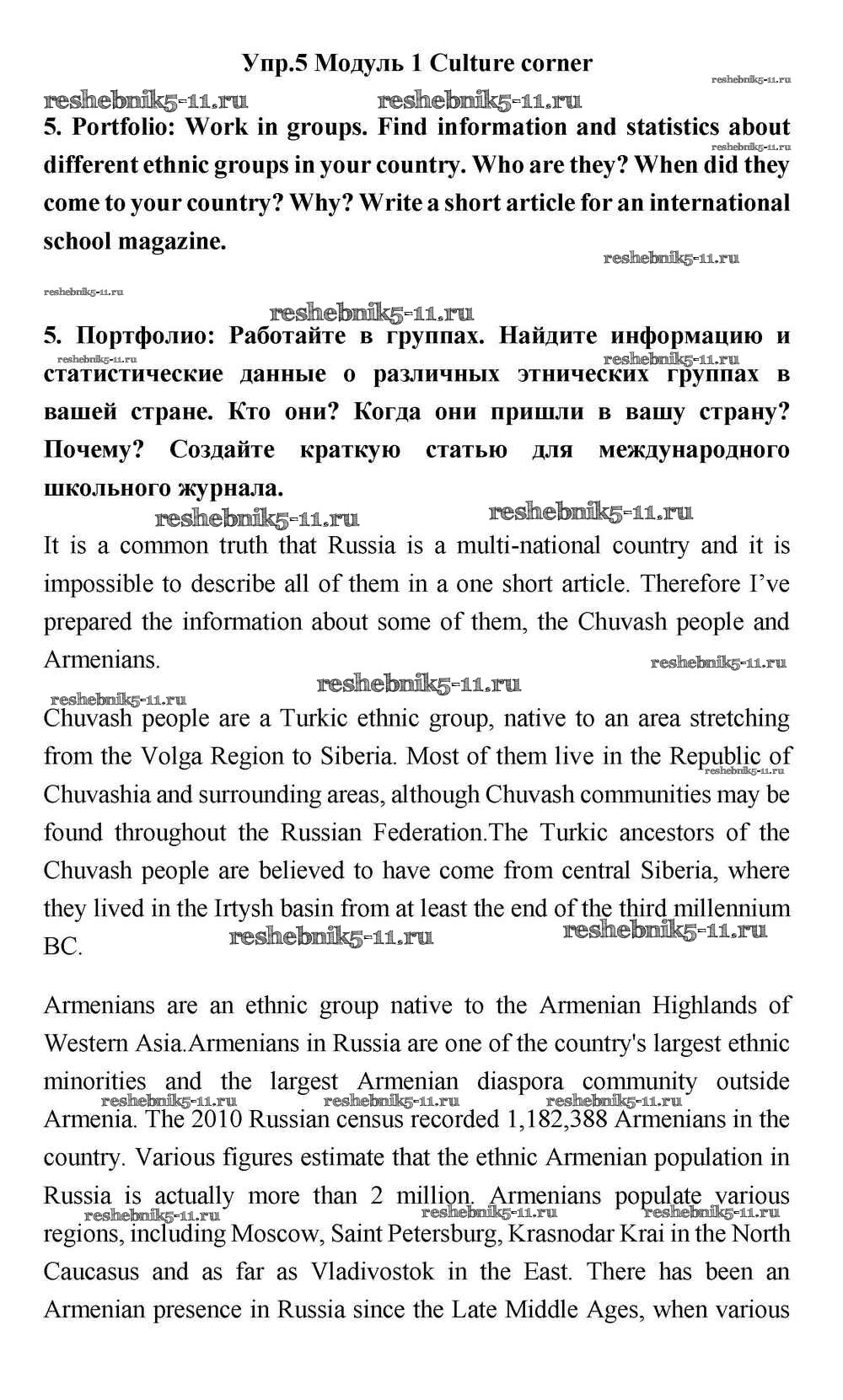 Готовая домашняя работа с ответами по Английскому языку за 11 класс Эванс, Дули, Оби, Афанасьева, Михеева Учебник Spotlight Просвещение 2015 ФГОС - Culture corner 5