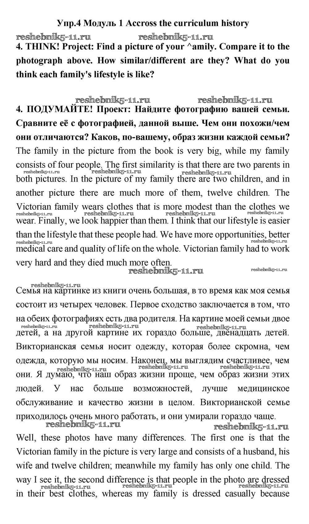 Готовая домашняя работа с ответами по Английскому языку за 11 класс Эванс, Дули, Оби, Афанасьева, Михеева Учебник Spotlight Просвещение 2015 ФГОС - Accross the curriculum history 4