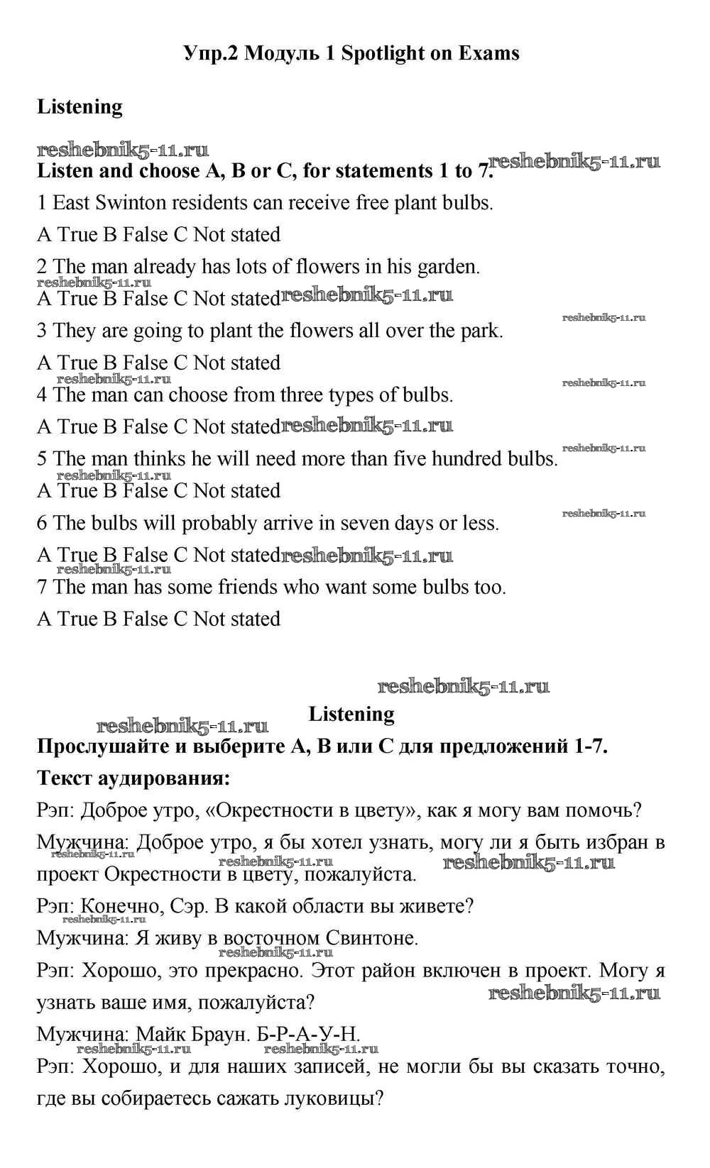 Готовая домашняя работа с ответами по Английскому языку за 11 класс Эванс, Дули, Оби, Афанасьева, Михеева Учебник Spotlight Просвещение 2015 ФГОС - Spotlight on Exams 2