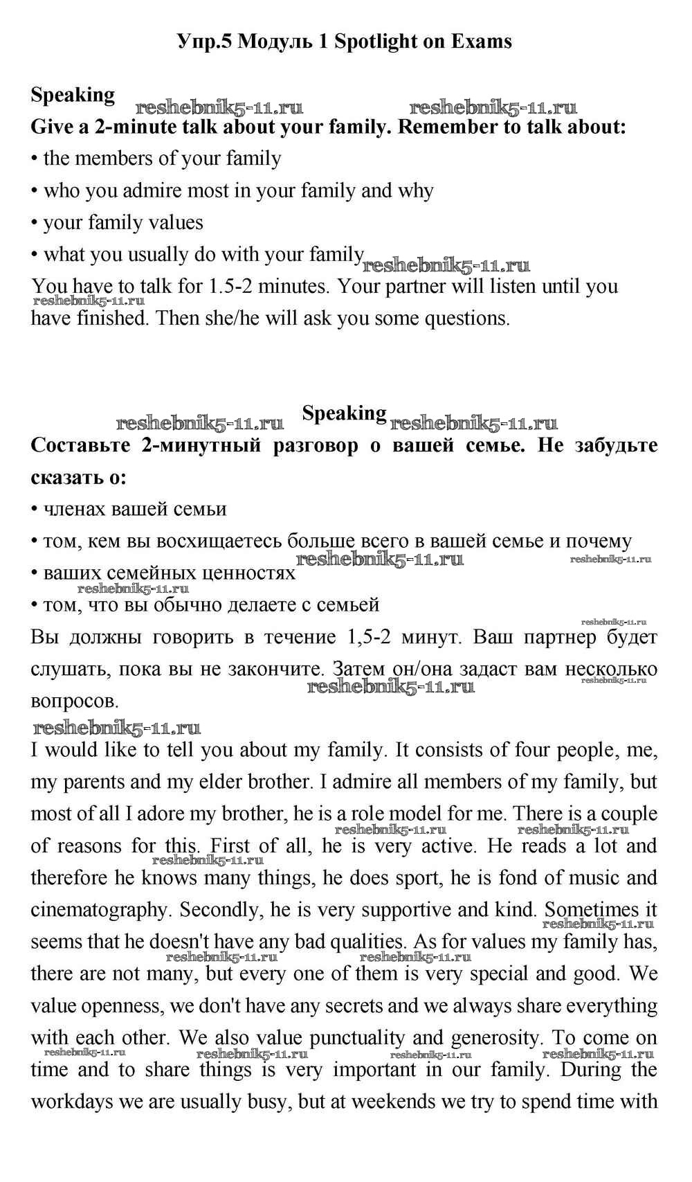 Готовая домашняя работа с ответами по Английскому языку за 11 класс Эванс, Дули, Оби, Афанасьева, Михеева Учебник Spotlight Просвещение 2015 ФГОС - Spotlight on Exams 5