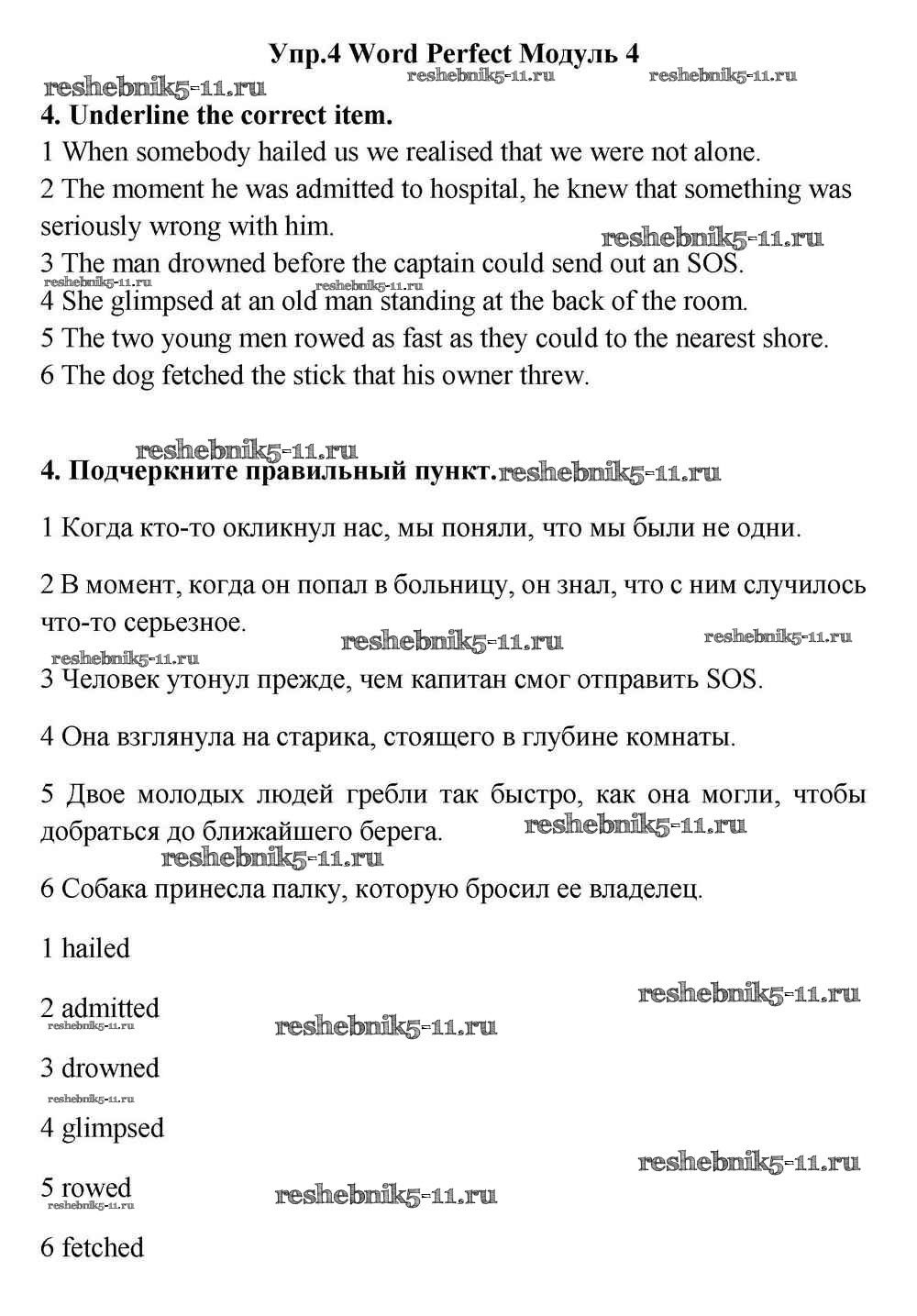 Готовая домашняя работа с ответами по Английскому языку за 11 класс Эванс, Дули, Оби, Афанасьева, Михеева Учебник Spotlight Просвещение 2015 ФГОС - Module 4 4