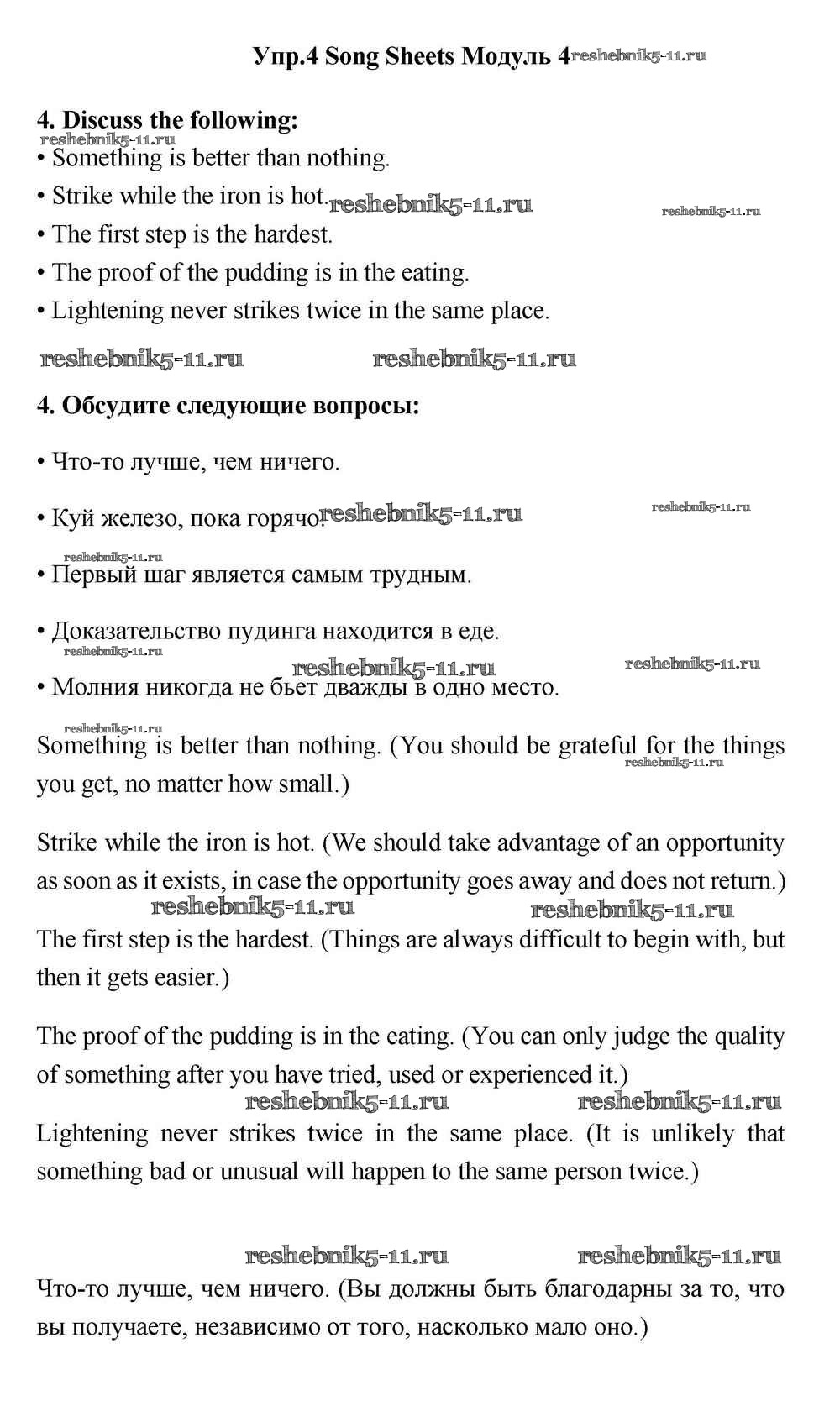 Готовая домашняя работа с ответами по Английскому языку за 11 класс Эванс, Дули, Оби, Афанасьева, Михеева Учебник Spotlight Просвещение 2015 ФГОС - Module 4 4