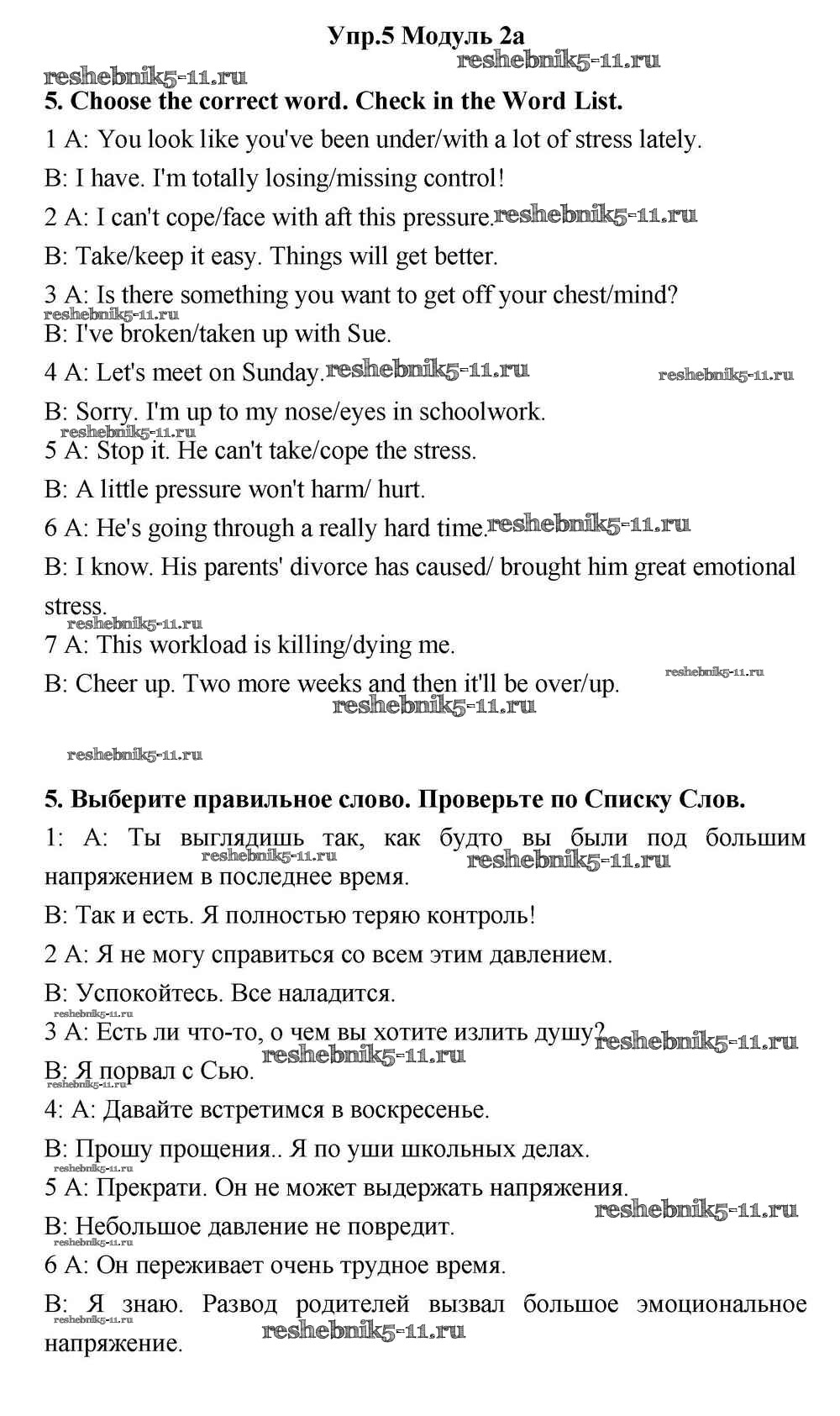 Готовая домашняя работа с ответами по Английскому языку за 11 класс Эванс, Дули, Оби, Афанасьева, Михеева Учебник Spotlight Просвещение 2015 ФГОС - Часть 2a 5