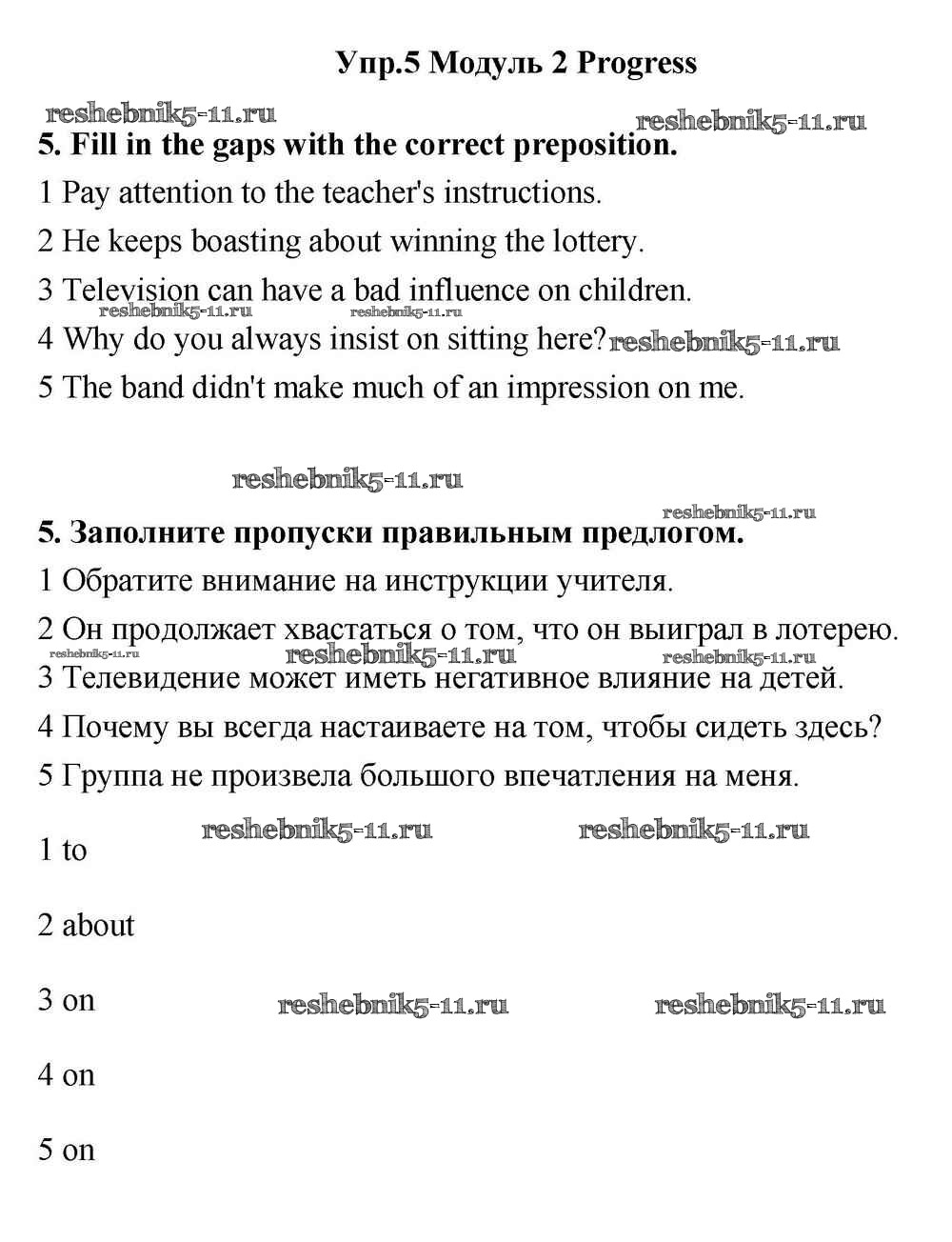 Готовая домашняя работа с ответами по Английскому языку за 11 класс Эванс, Дули, Оби, Афанасьева, Михеева Учебник Spotlight Просвещение 2015 ФГОС - Progress Check 5