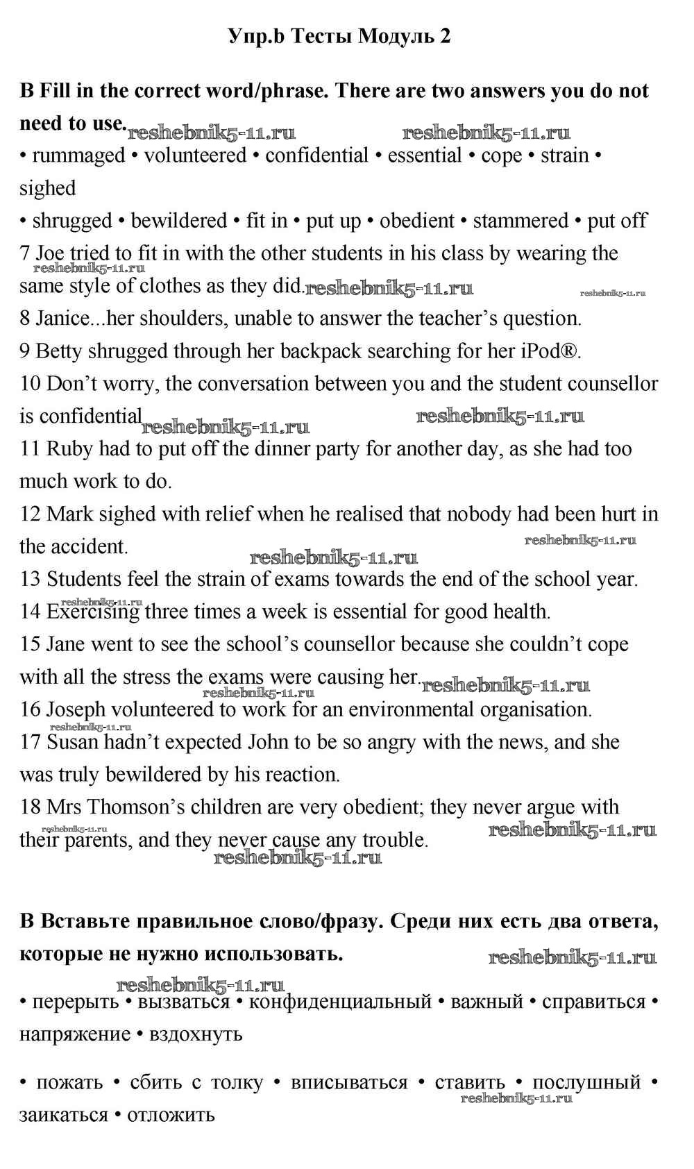 Готовая домашняя работа с ответами по Английскому языку за 11 класс Эванс, Дули, Оби, Афанасьева, Михеева Учебник Spotlight Просвещение 2015 ФГОС - Тесты B