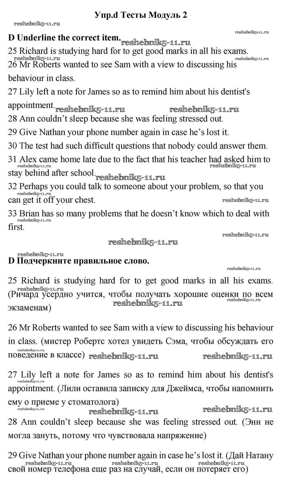 Готовая домашняя работа с ответами по Английскому языку за 11 класс Эванс, Дули, Оби, Афанасьева, Михеева Учебник Spotlight Просвещение 2015 ФГОС - Тесты D