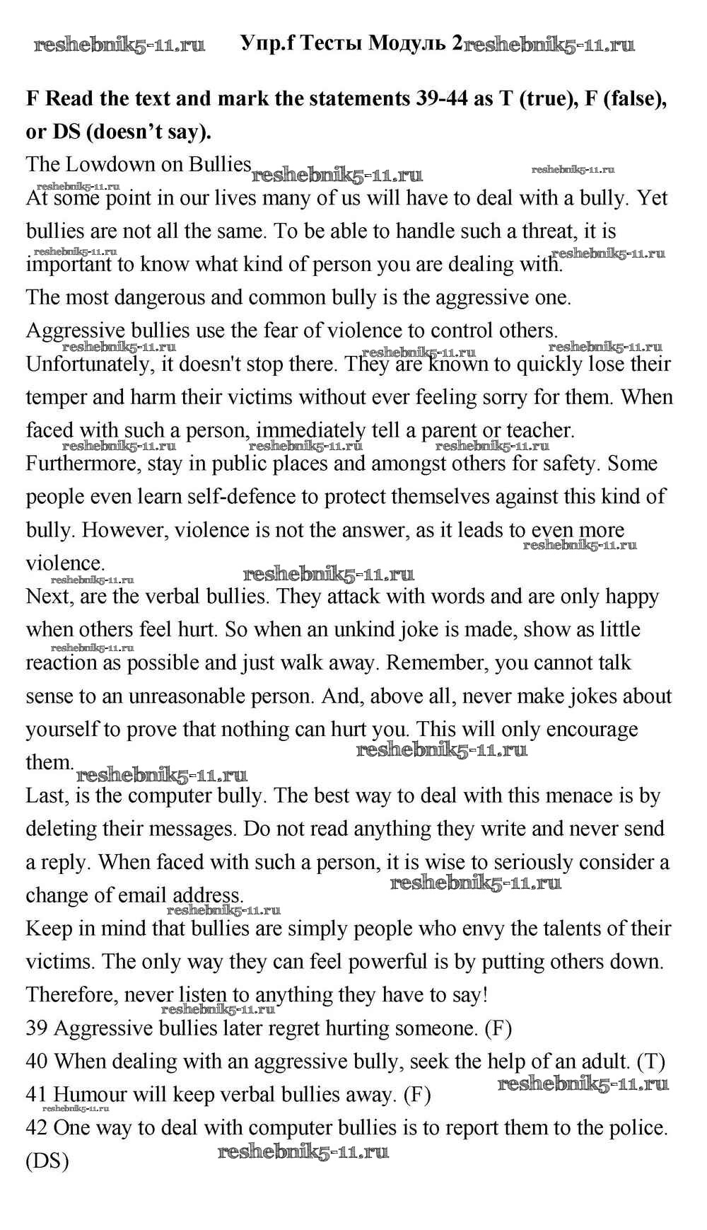 Готовая домашняя работа с ответами по Английскому языку за 11 класс Эванс, Дули, Оби, Афанасьева, Михеева Учебник Spotlight Просвещение 2015 ФГОС - Тесты F
