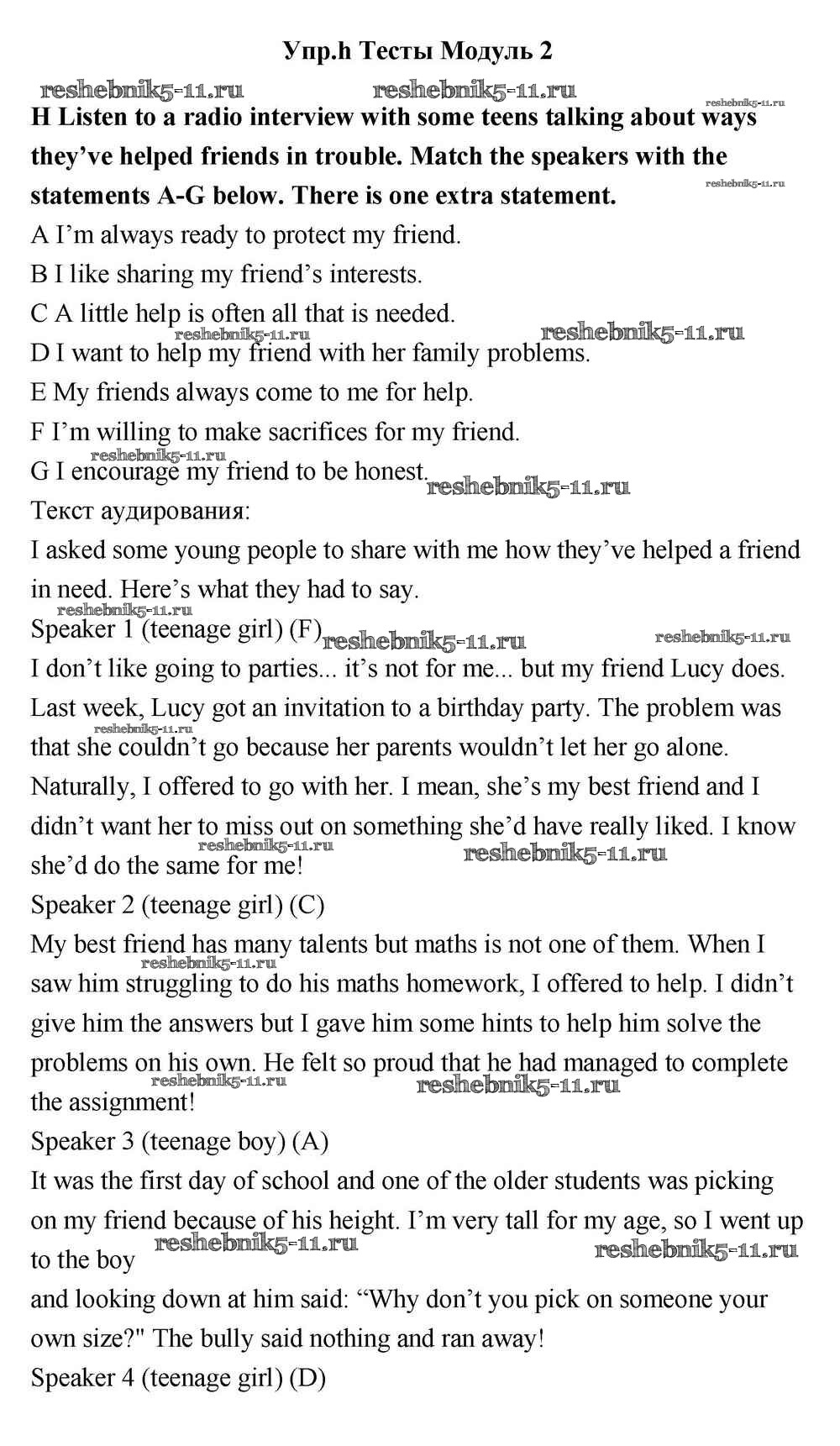 Готовая домашняя работа с ответами по Английскому языку за 11 класс Эванс, Дули, Оби, Афанасьева, Михеева Учебник Spotlight Просвещение 2015 ФГОС - Тесты H