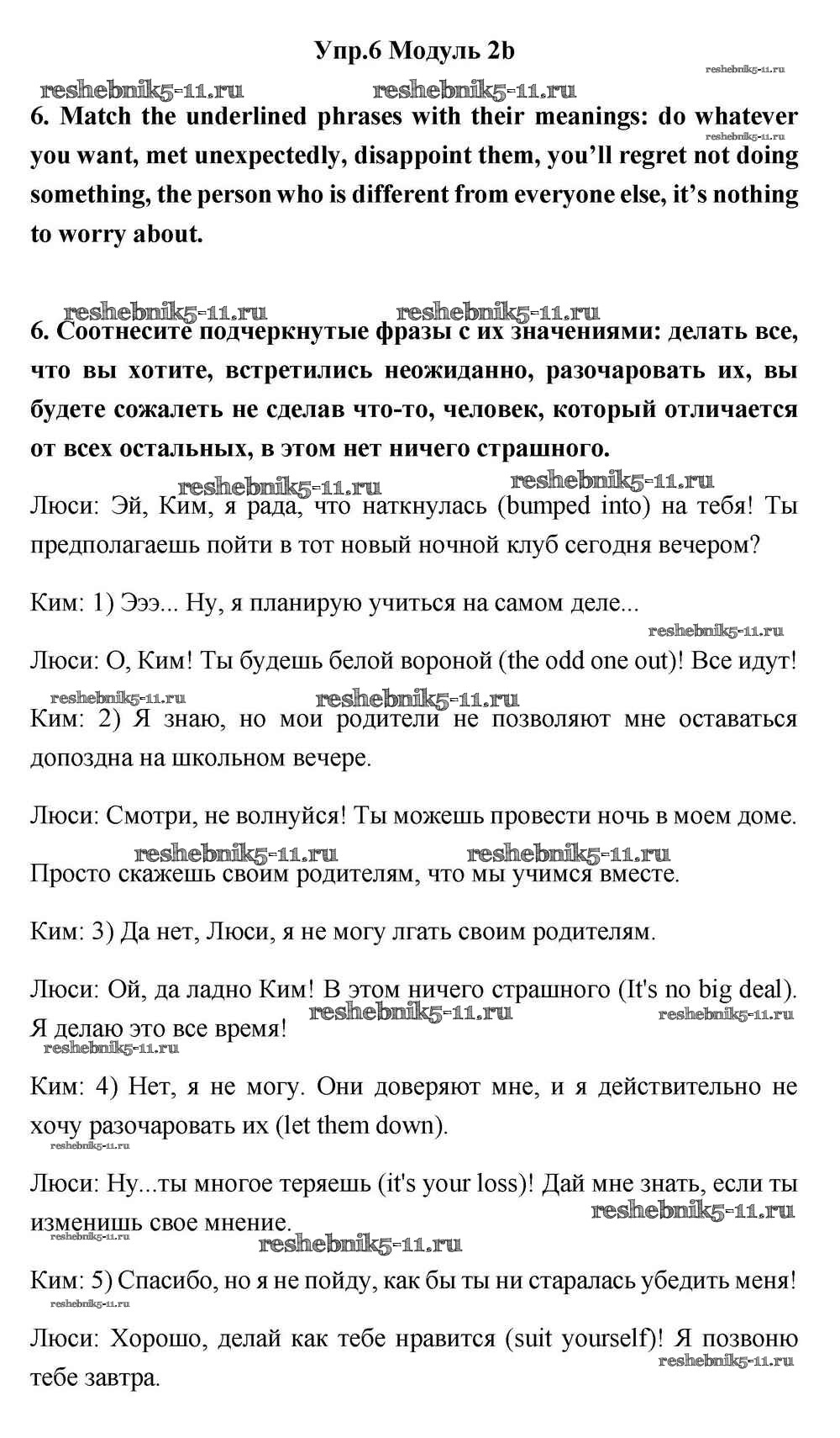 Готовая домашняя работа с ответами по Английскому языку за 11 класс Эванс, Дули, Оби, Афанасьева, Михеева Учебник Spotlight Просвещение 2015 ФГОС - Часть 2b 6