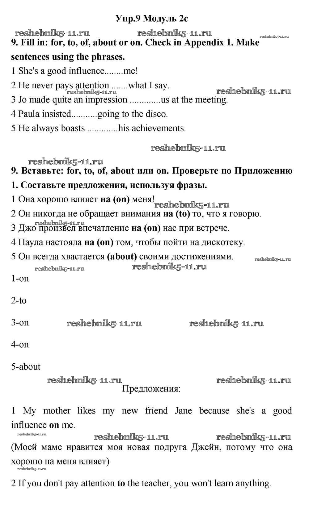 Готовая домашняя работа с ответами по Английскому языку за 11 класс Эванс, Дули, Оби, Афанасьева, Михеева Учебник Spotlight Просвещение 2015 ФГОС - Часть 2c 9
